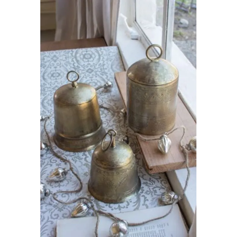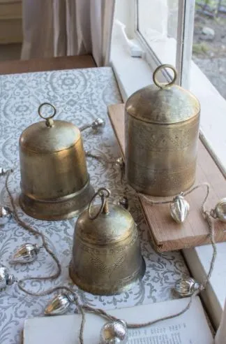 Ring in the holiday season with this set of three Christmas bells. Made in India, this set has a brass finish for a truly antique look. They will look wonderful on your coffee table or bookshelf for the holidays or any day!