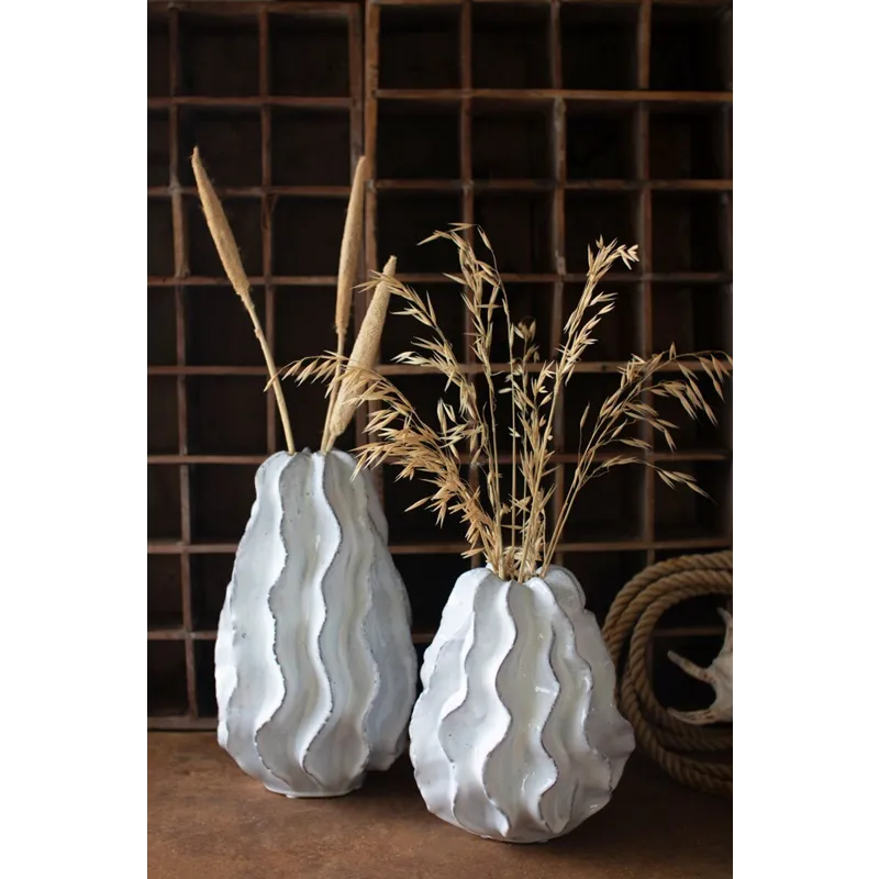 The Large Ceramic Ruffle Vase by Kalalou may be available at Treeforms Furniture Gallery in the Anchorage, Wasilla and Anchorage areas. Please contact us to check availability.