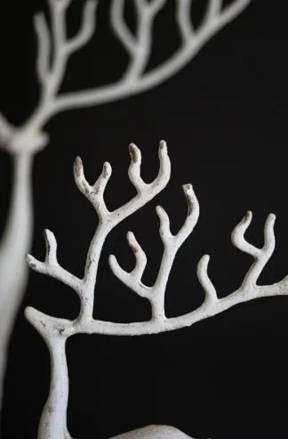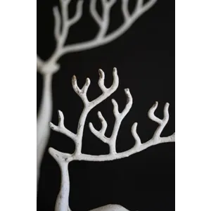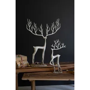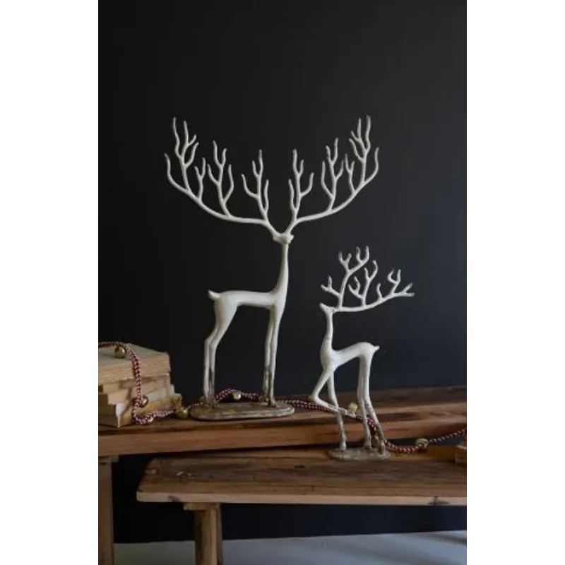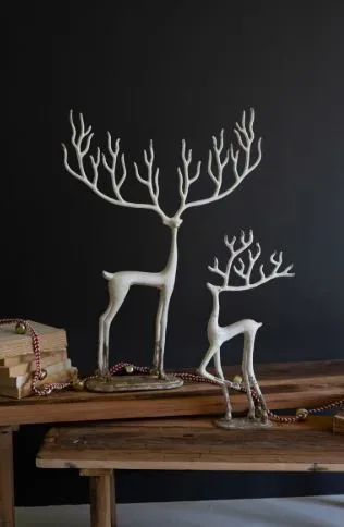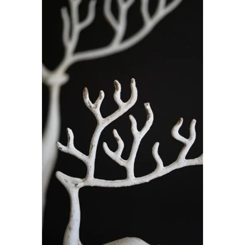 This set includes two white cast iron deer. Weave ribbons through their wide antlers or hang your favorite baubles for a festive touch year-round. Deck with cheer during the holidays or gather these reindeer around Santa's sleigh.