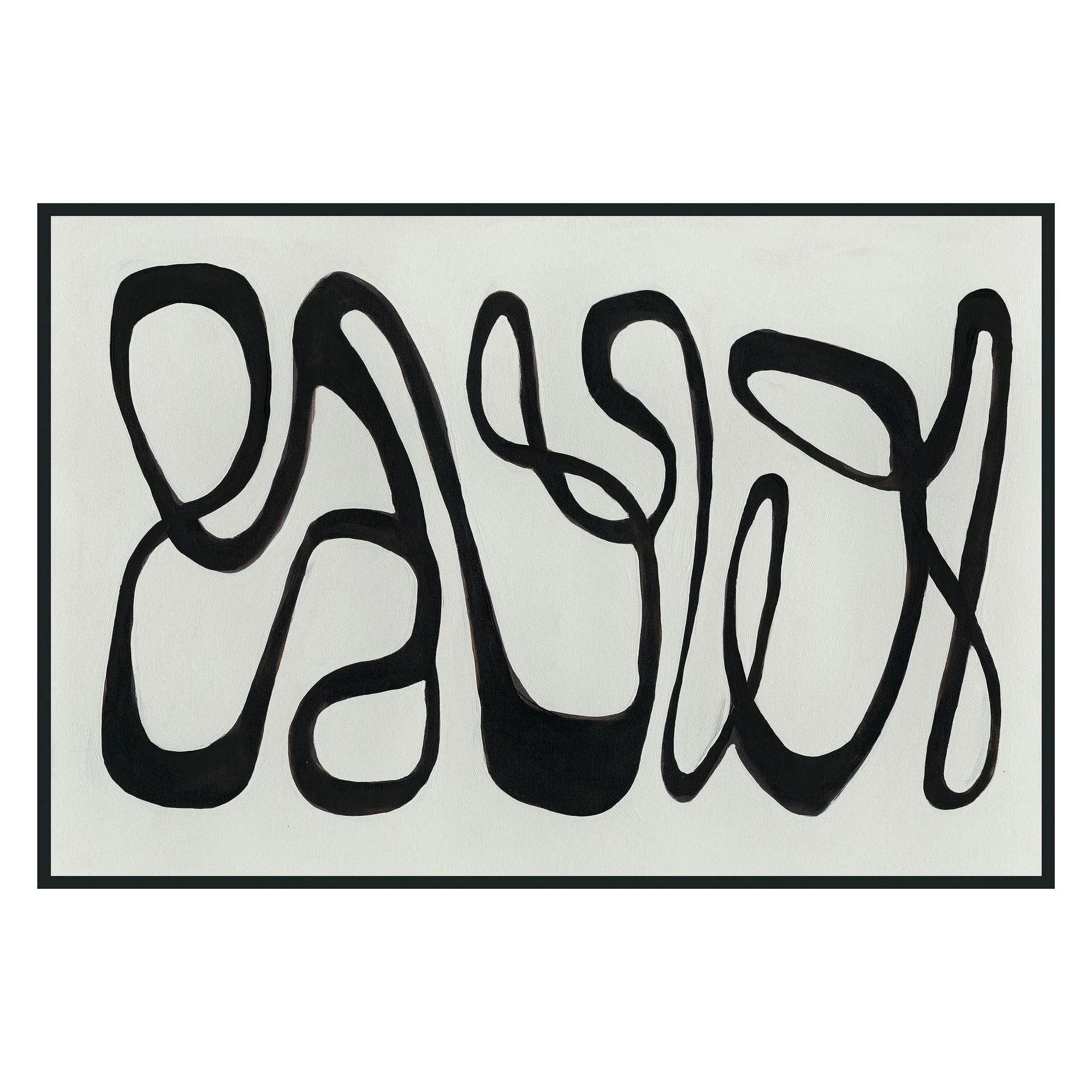 The abstract piece Mono Painting by Buddy Whitlock features bold monochromatic lines that intertwine to create a striking visual rhythm. Framed in a thick black shadow frame, it exudes modern sophistication and adds an edgy, contemporary touch to any space.