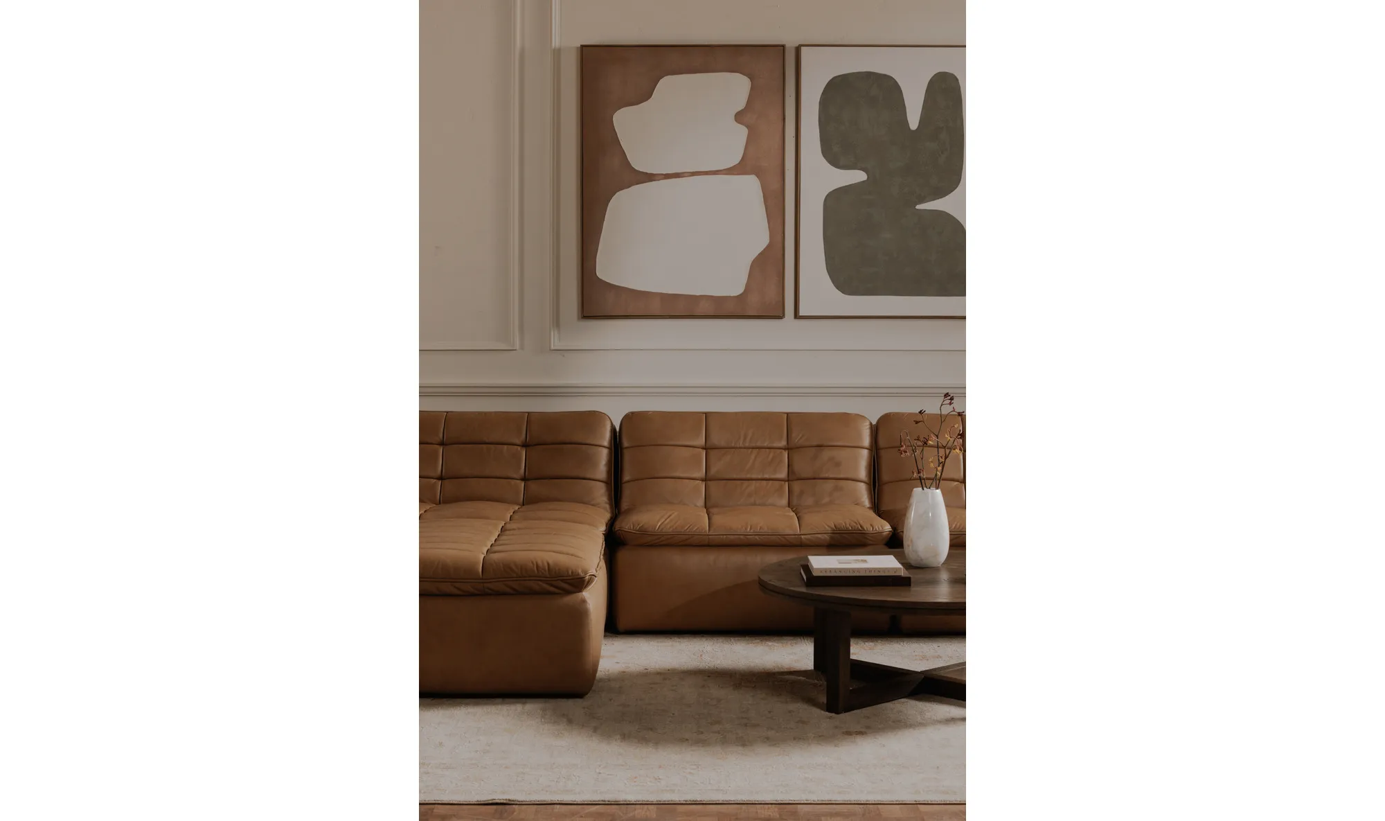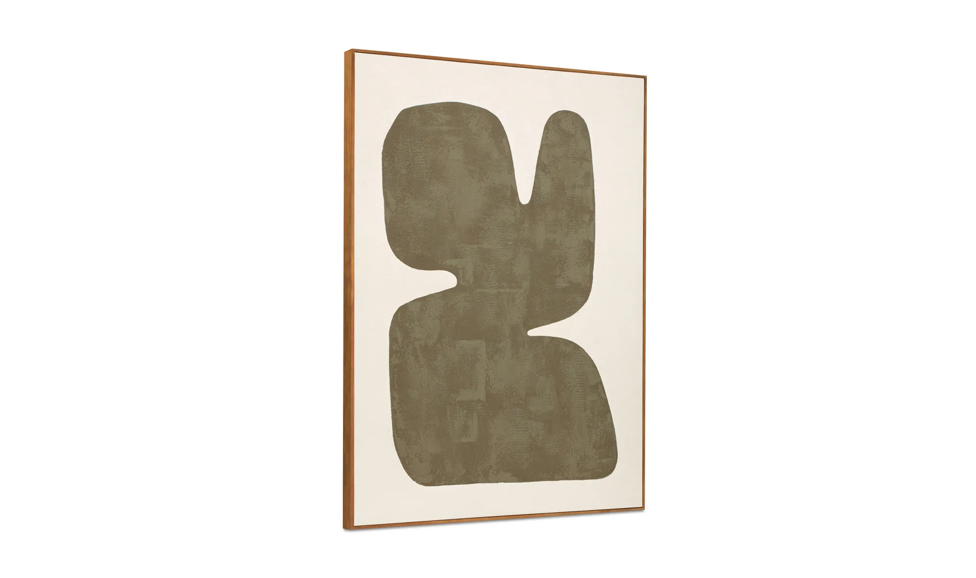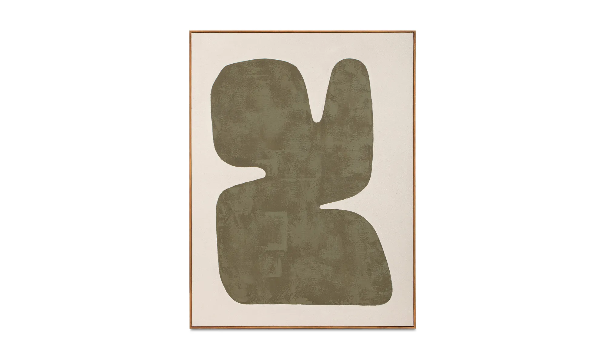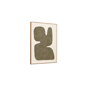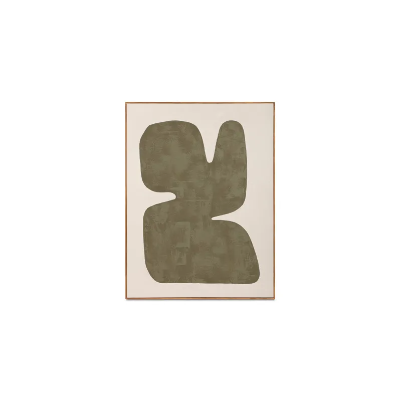 The Soha framed painting bridges bold modernism and everyday sophistication. Rich sage green hues dance against an off-white background, creating a harmonious balance. This abstract, free-form painting is encased in a solid pine frame, adding warmth and natural charm.