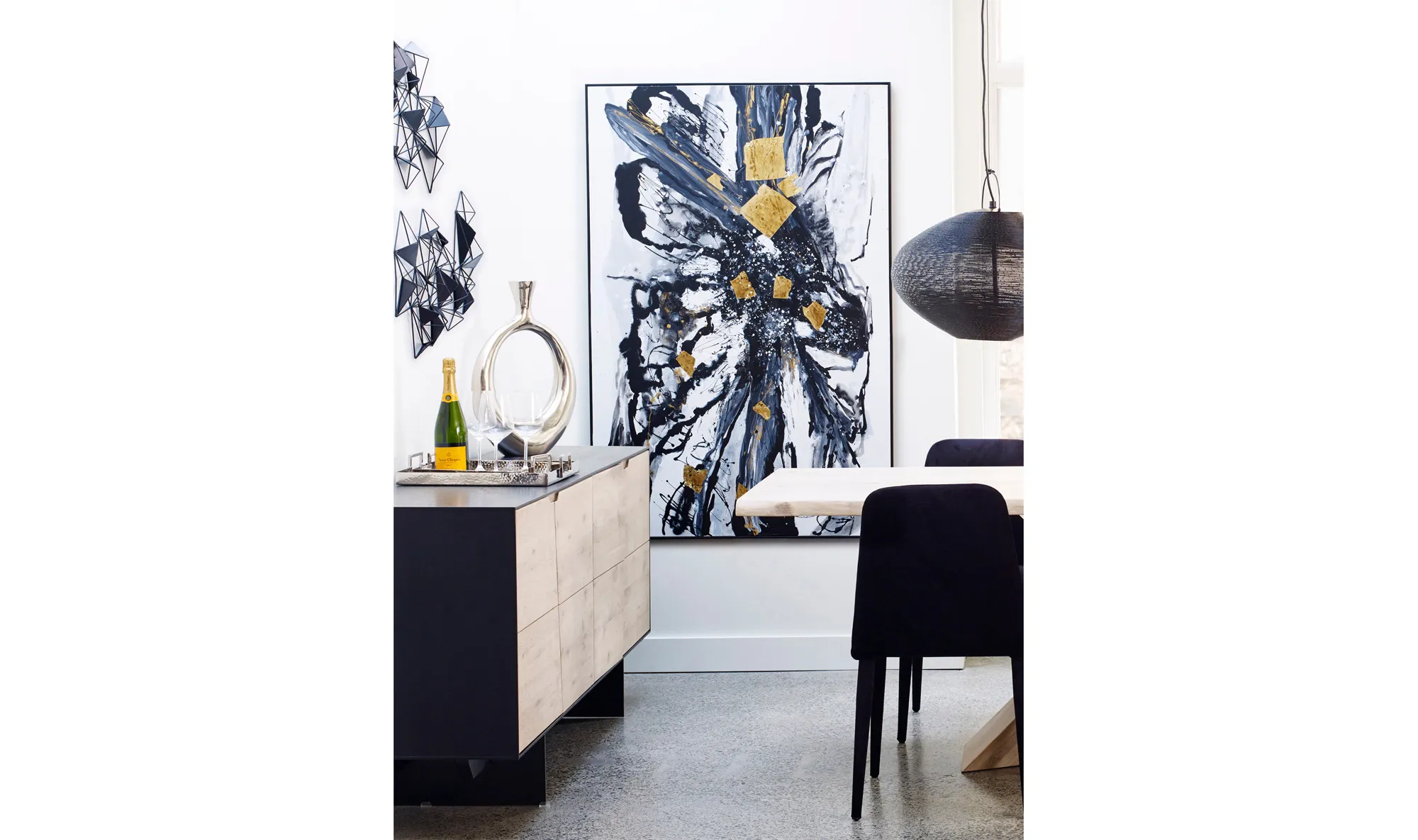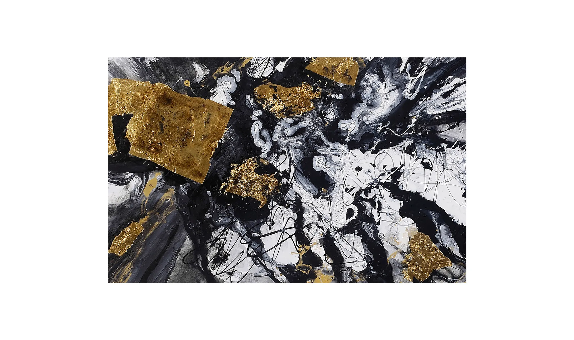 An abstract image of black, white and gold that will compliment your contemporary Décor.