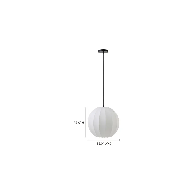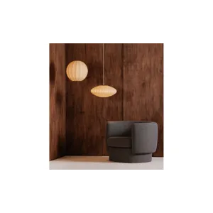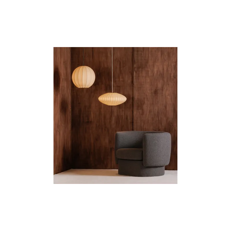 The Illume pendant lamp exudes mid-century charm with a sense of ethereal lightness. Its spherical cocoon-like design is crafted with delicate materials to create an enchanting, airy atmosphere. Effortlessly blending vintage inspiration with modern sophistication, its captivating form evokes a sense of serenity and weightlessness.