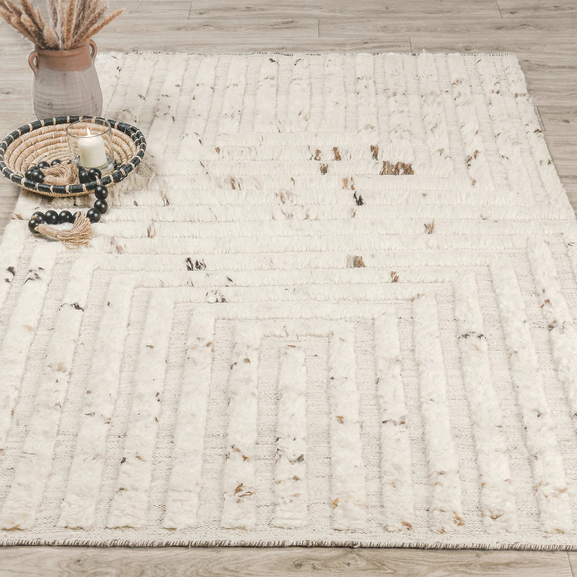 Bring artisanal beauty to your room with this luxury handwoven rug is crafted from high piled wool and jute fibers. A sustainable choice, this rug offers an elevated design of soft lines and texture. Made for medium traffic, select from multiple sizes for a perfect fit.