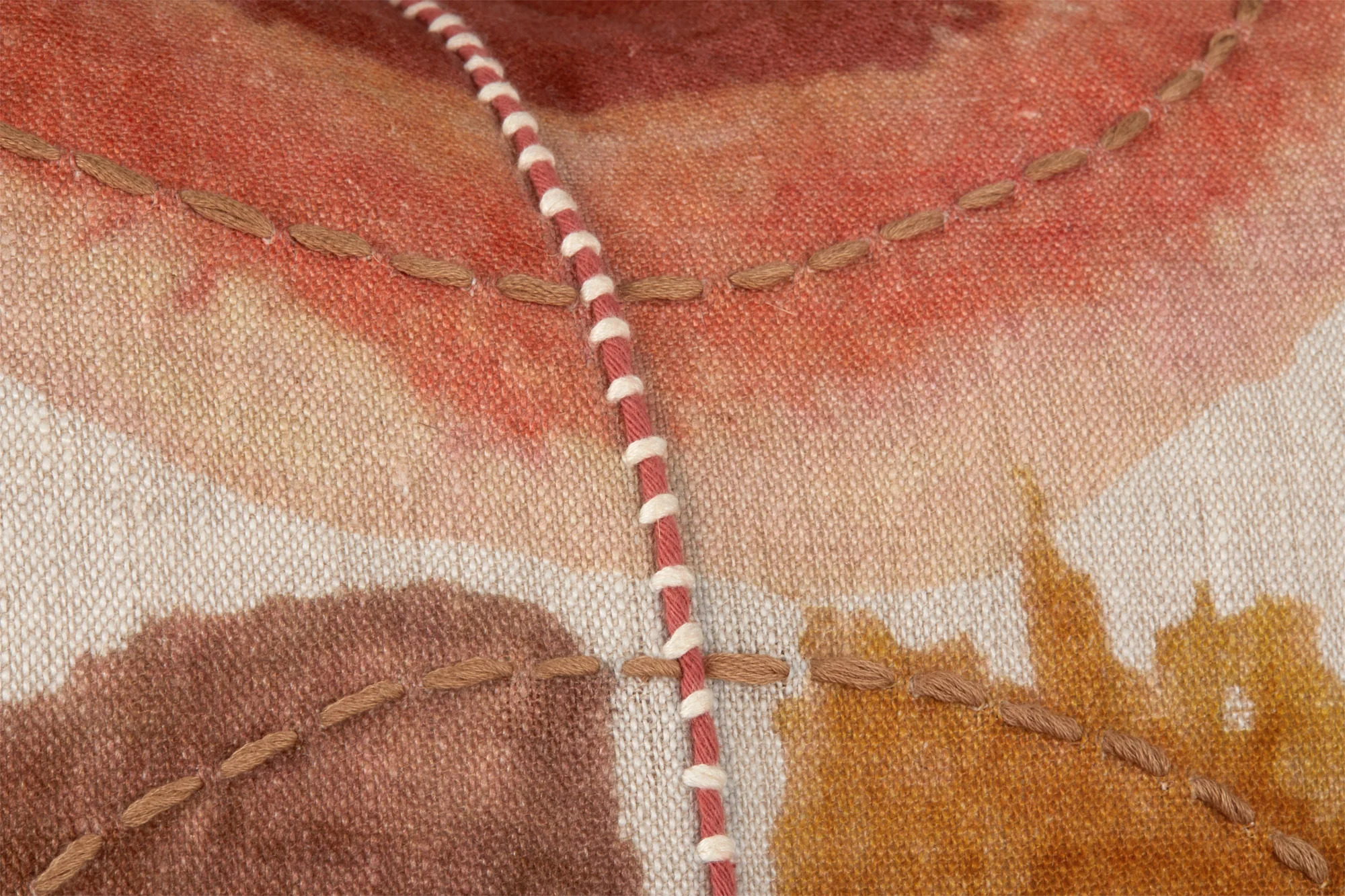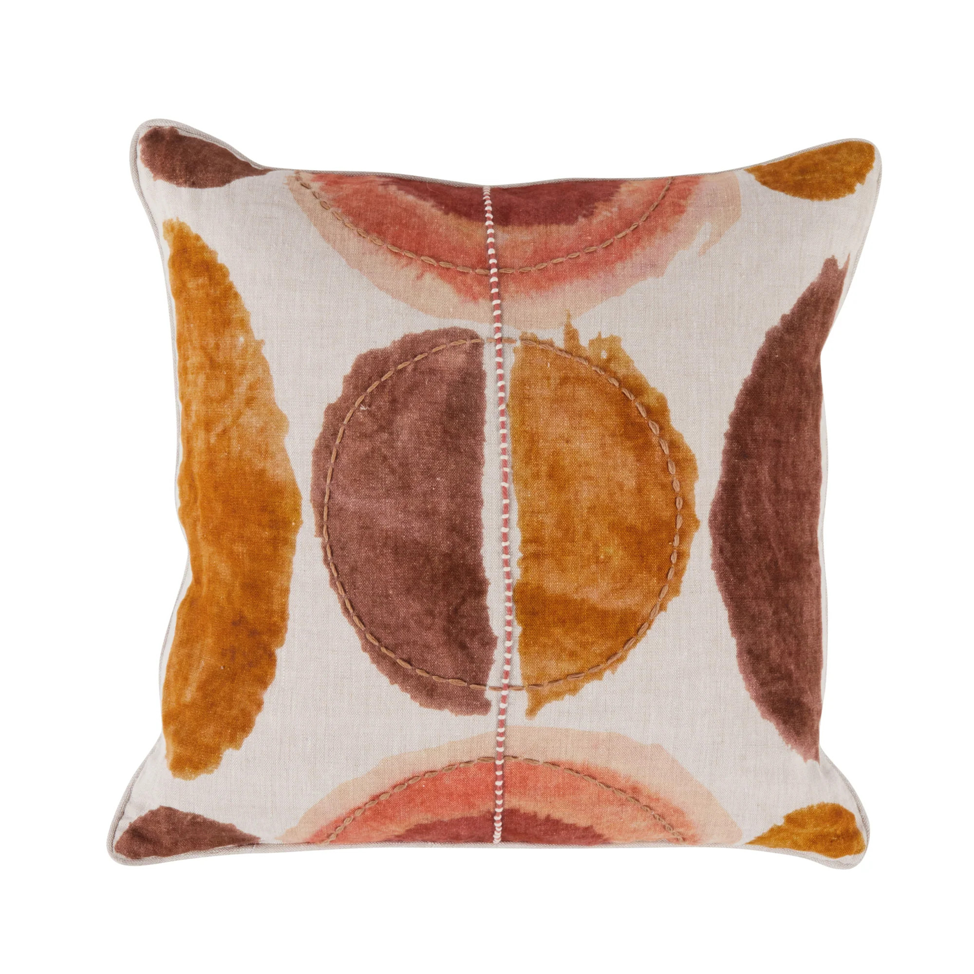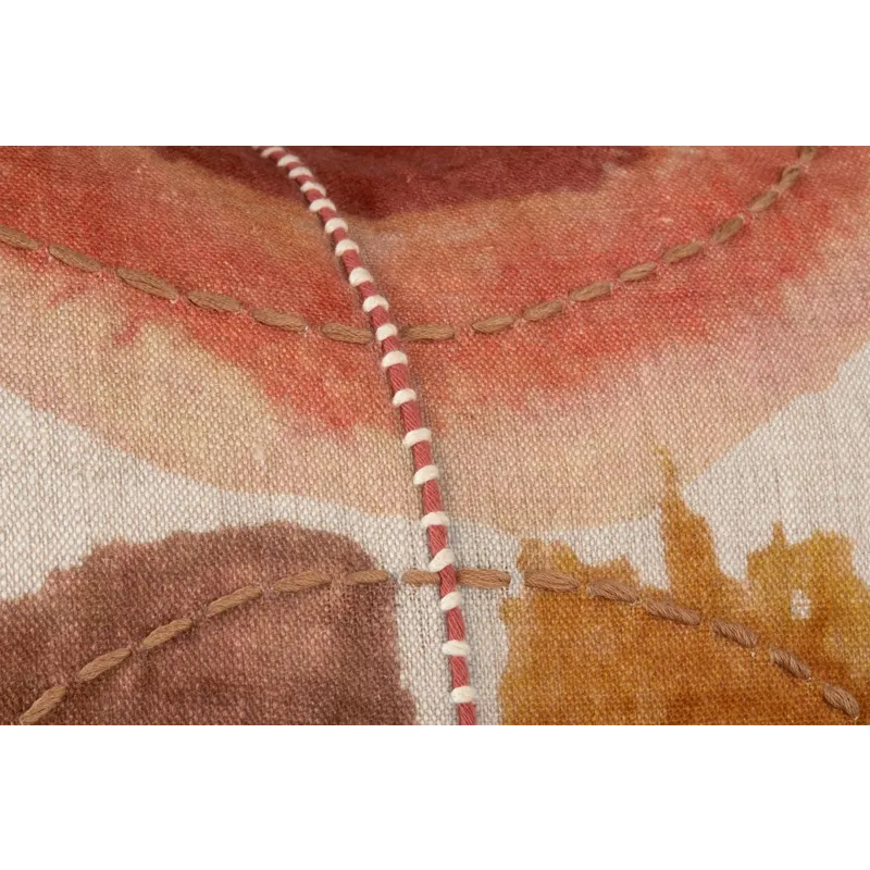 Embracing the shapes found in watercolor painting, joined with embroidery at the center, this pillow delightfully glows its reddish-orange hues. With its symmetrical style, this design is perfect for those who want extra artistic flair.