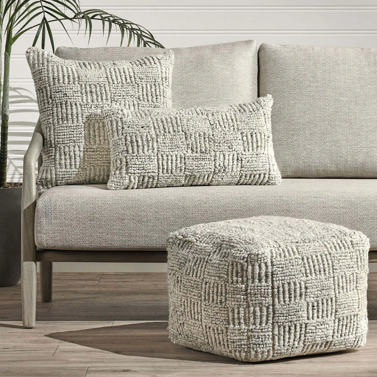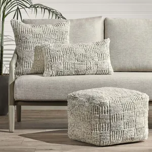 Elevate your outdoor area with a touch of comfort using this pouf adorned with a handwoven knitted pattern. Treated with an outdoor finish to withstand fading and moisture, this resilient piece adds a contemporary flair to any environment.