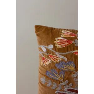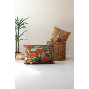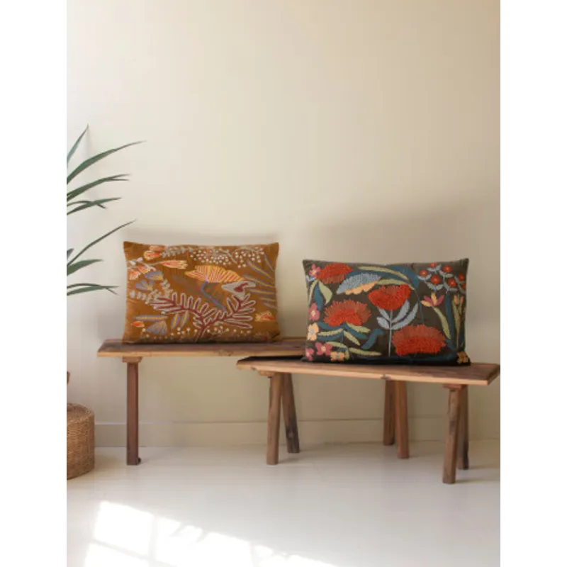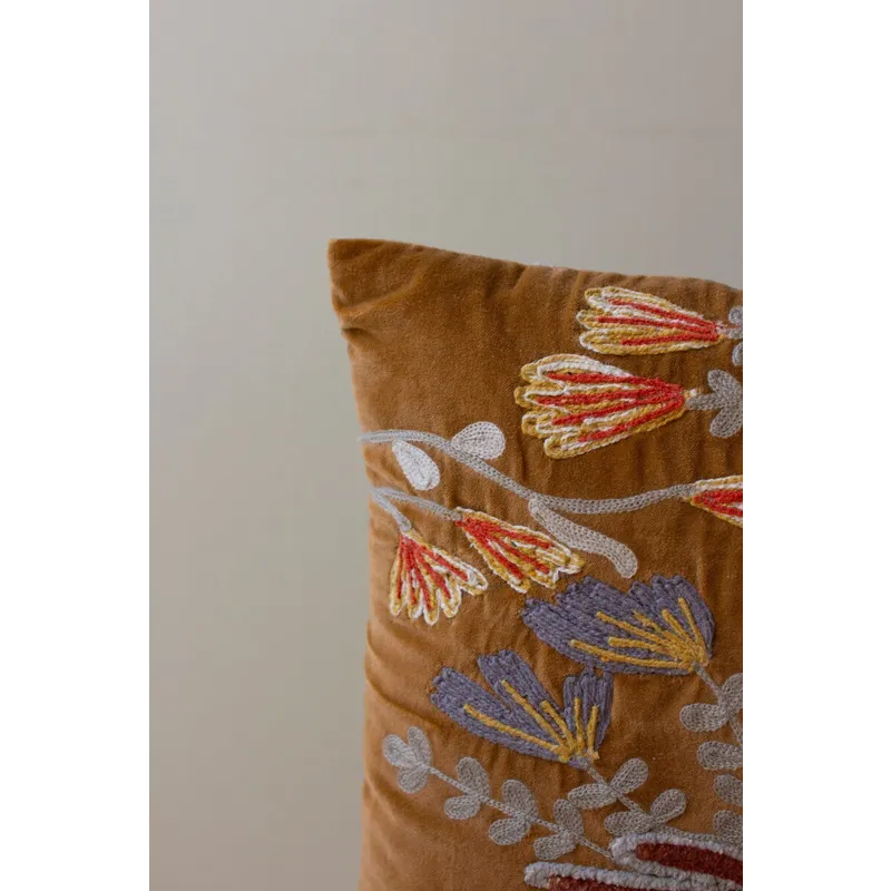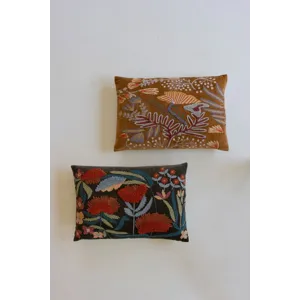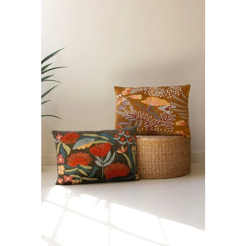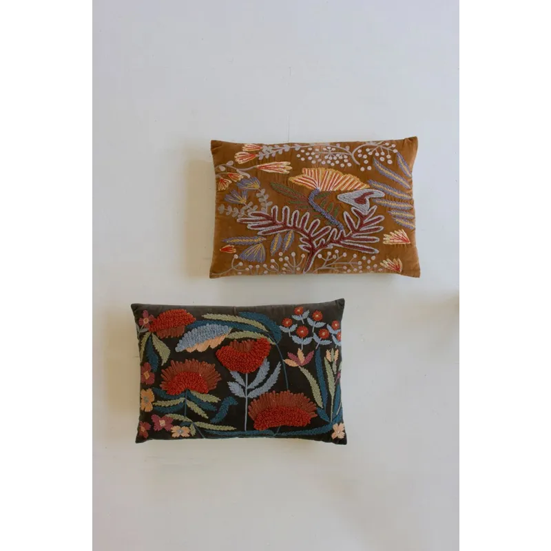 Set of 2 Embroidery Pillows with Flowers