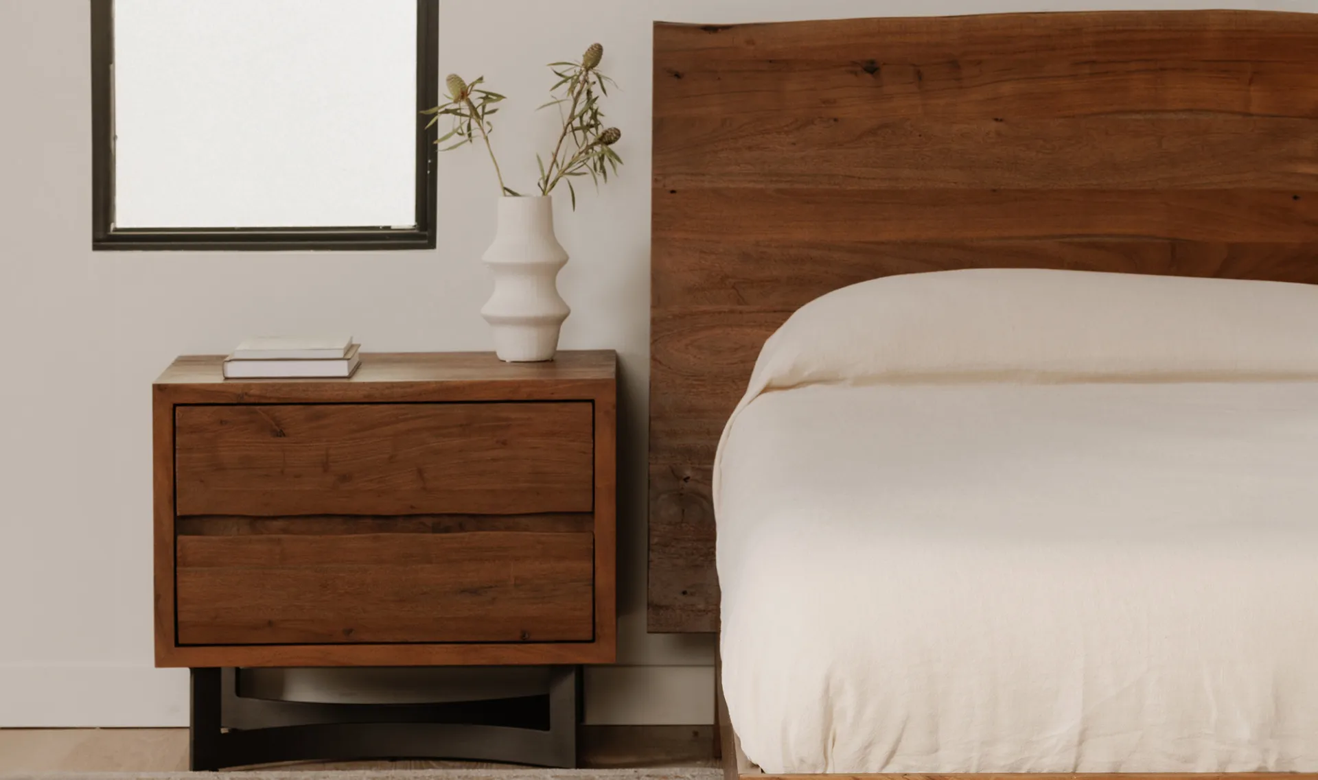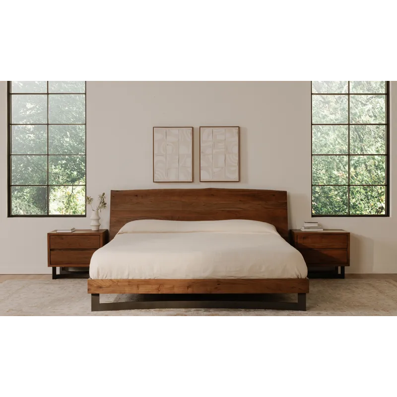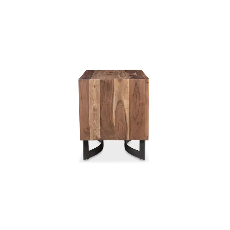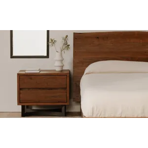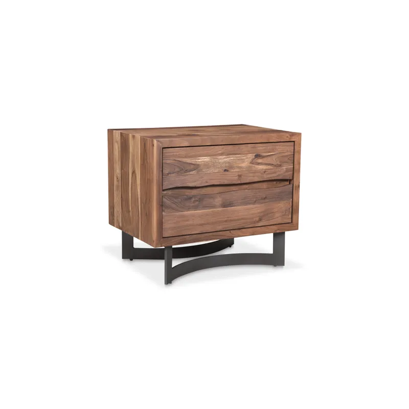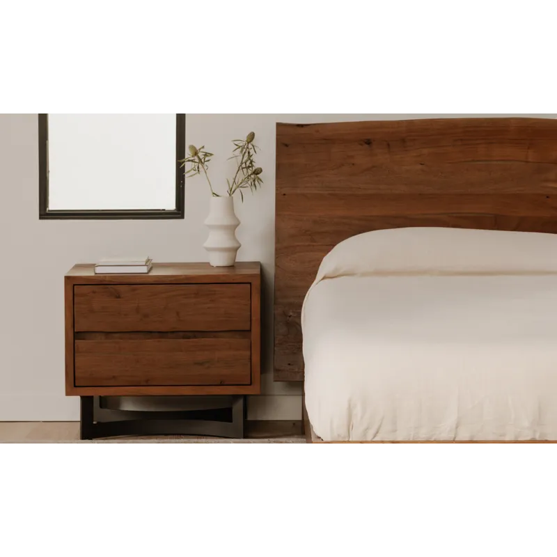 The Bent collection puts nature’s craft front and center. Made of beautiful solid acacia wood, rustic live edge detailing shows off the unique knots and whorls of the wood. This nightstand features 2 drawers on easy slide glides, offering a convenient storage solution for your bedroom space. Pair with other pieces in the Bent bedroom collection for a complete look.