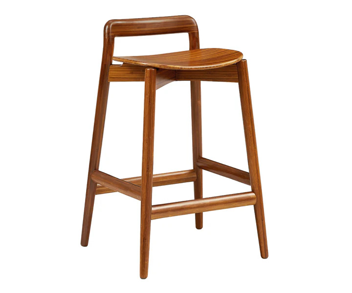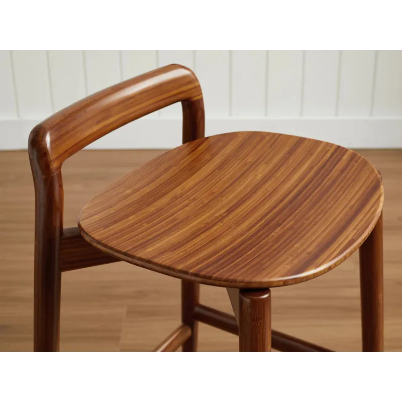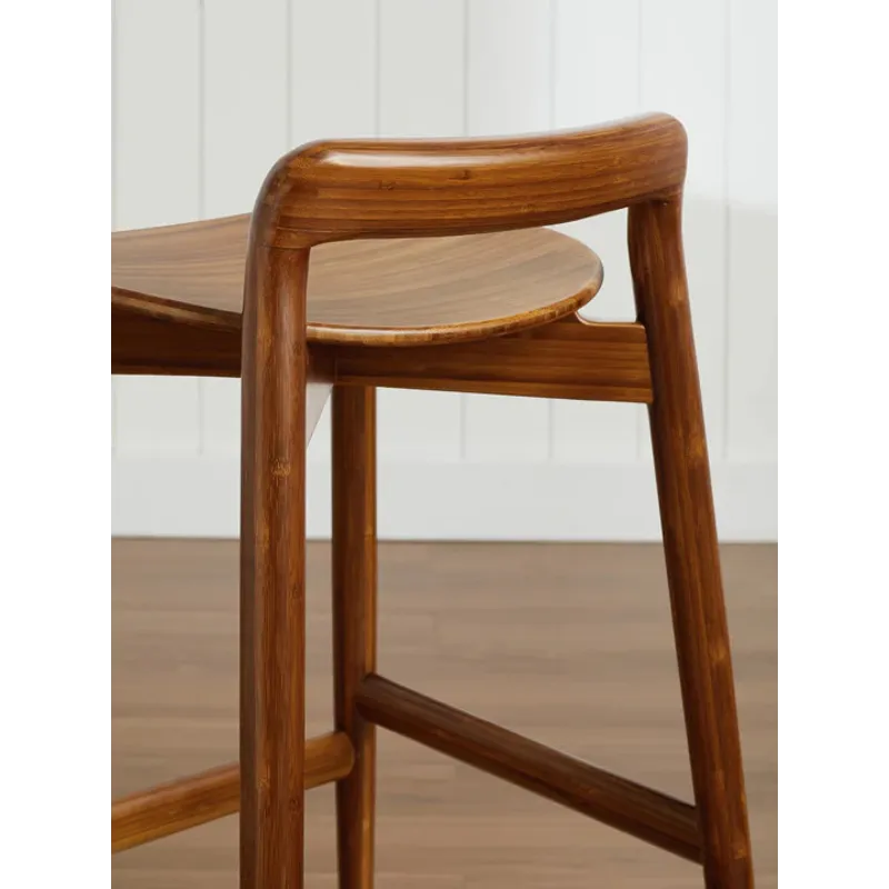 Designed for both durability and style, the Linna counter stool is built to meet the rigorous demands of residential and commercial use. Expertly crafted from sustainable solid bamboo, its rich Amber hue is achieved through an eco-friendly process using heat, steam, and pressure, resulting in a deep, natural color that permeates the entire material. Each piece showcases unique grain patterns and slight color variations, highlighting the organic beauty of bamboo and underscoring its superior craftsmanship.