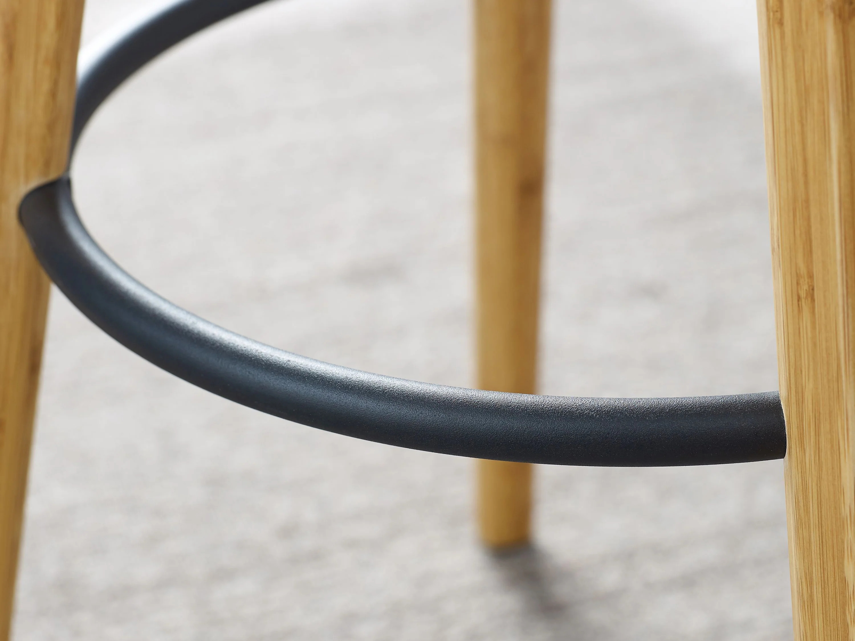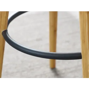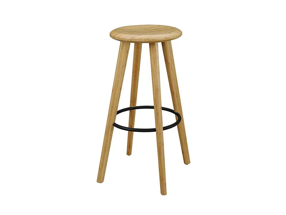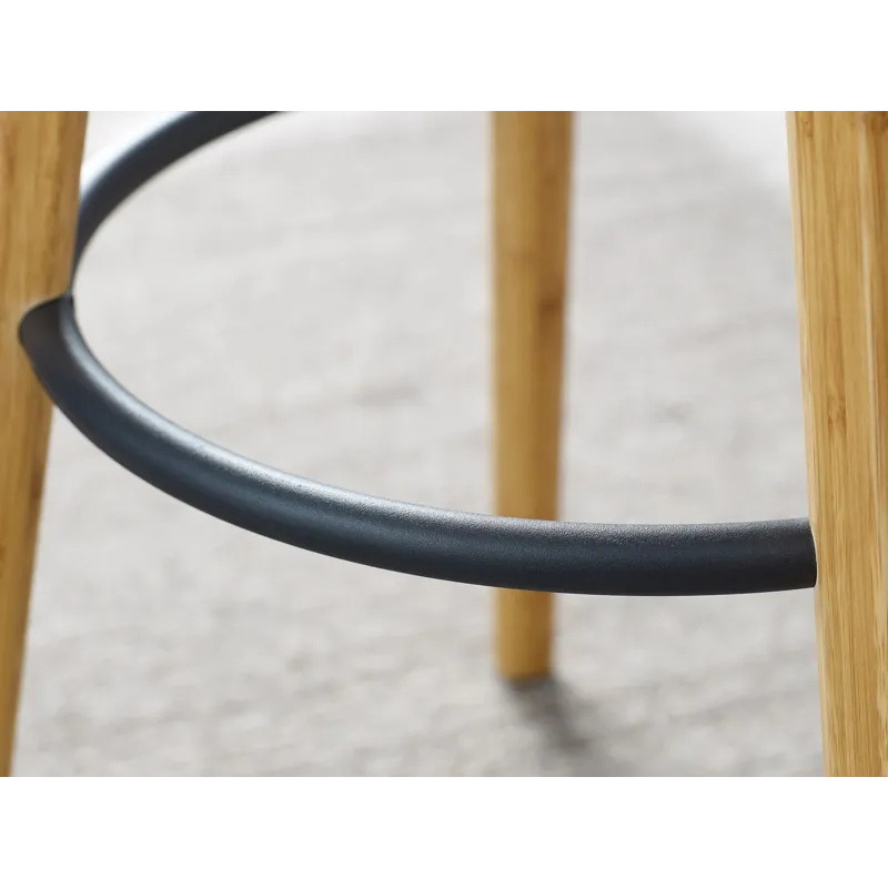 A study in modern elegance, the Mimosa bar stool blends architectural inspiration with refined craftsmanship to create a striking silhouette. Its sculpted, gently rounded seat rests gracefully on tapered solid bamboo legs, while a sleek steel footrest adds both function and visual balance. Designed with an eye for proportion and comfort, Mimosa offers a seating experience that feels as good as it looks.