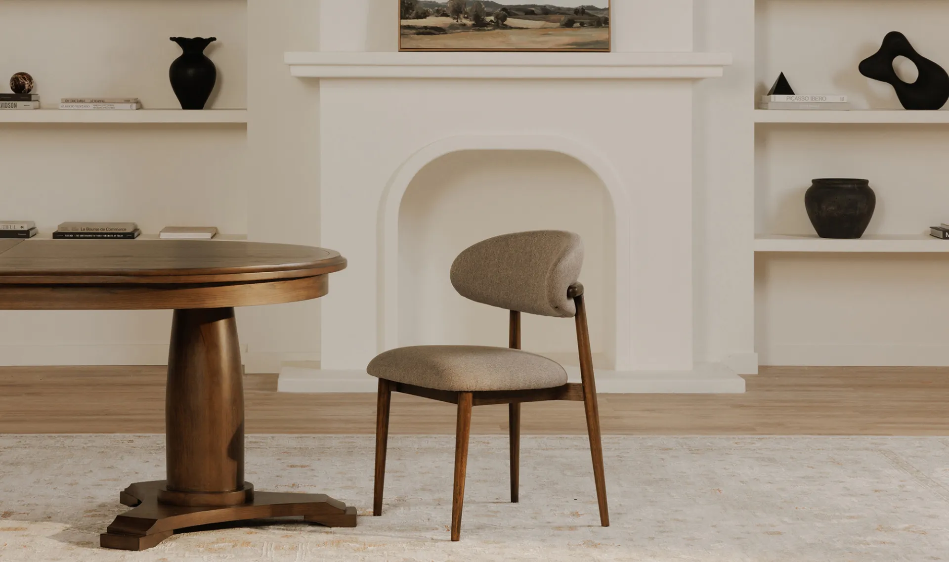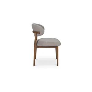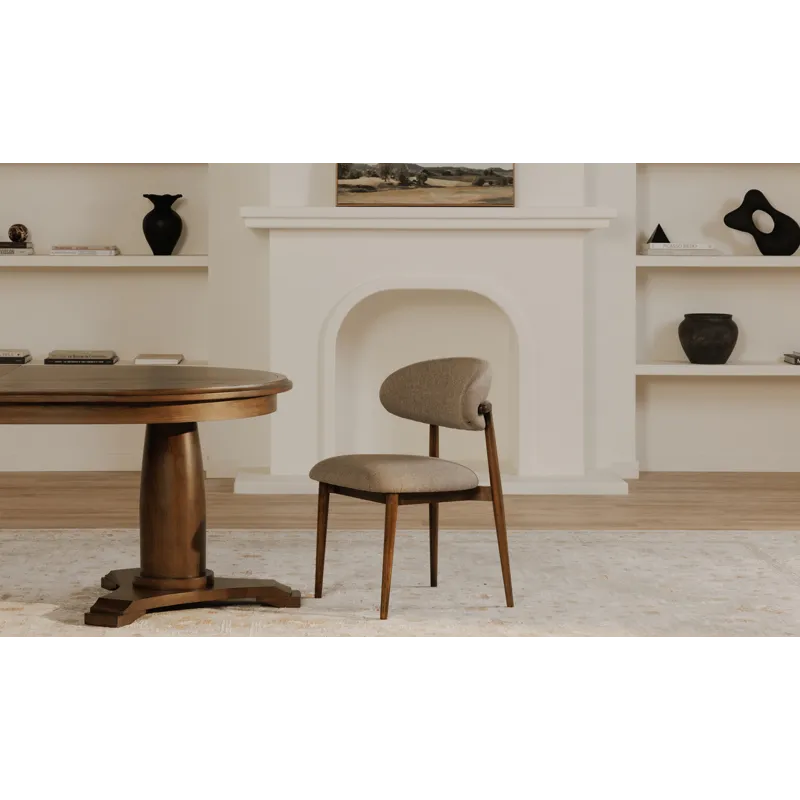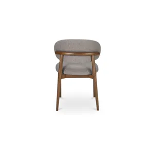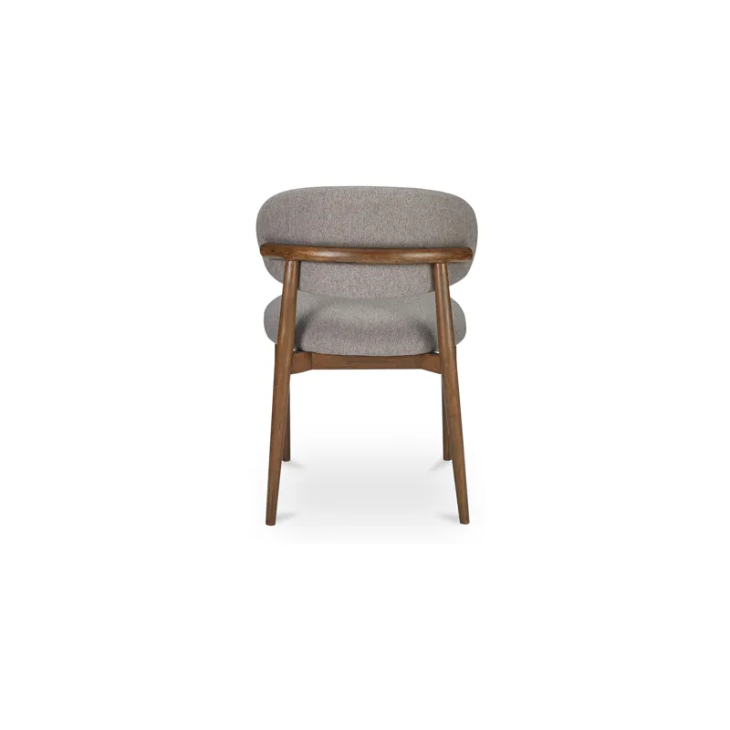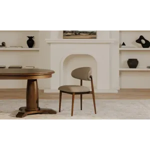 The Ellie dining chair features a padded winged backrest, a refined invitation to gather. A robust rubberwood frame bathed in a dark espresso brown finish harmonizes with the rustic, warm brown, easy-to-clean performance fabric upholstery, adding a vintage charm with modern convenience--a versatile design that complements a myriad of interior styles.