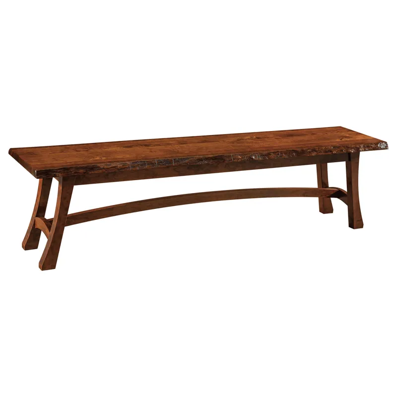 Center Leg on Benches 96" and Longer Available in Cherry, Brown Maple, Walnut and Rustic Cherry 1 3/8" Live Edge Top is Standard, Also Available without Live Edge