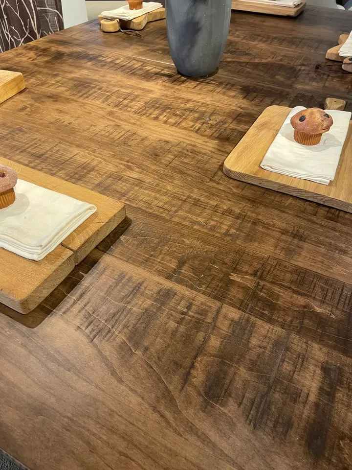 • Rough sawn wormy maple wood with almond stain