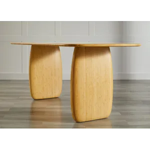 Two bold elliptical pedestals add luxury and volume and offer plenty of legroom for comfort. Celebrating both sustainable materials and fine craftsmanship, Aria is designed to inhabit a dining room with a commanding yet understated presence. Available in two sizes, 72 x 36” and 84 x 42”, the Aria dining collection is a luxurious place to gather and dine. The Aria dining table in wheat finish is available by direct container only.