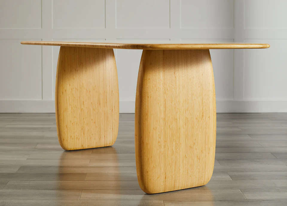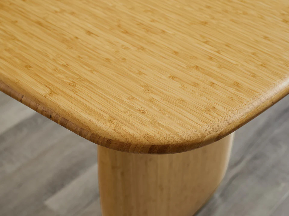 Meticulously crafted from solid bamboo in a light Wheat finish, this dining table celebrates the unique variations in grain and color that enhances the natural beauty of bamboo. Sustainable and earth friendly, Wheat finish is not a surface stain, the color is the result of an innovative process using heat, steam, and pressure to transform the solid bamboo material into Wheat’s variety of tones. The environmentally safe finish displays a beautiful grain pattern with continuous color throughout the material. Subtle differences in the shade of the bamboo are a hallmark of its solid construction and serve as a mark of exceptional quality, making each piece truly one-of-a-kind.