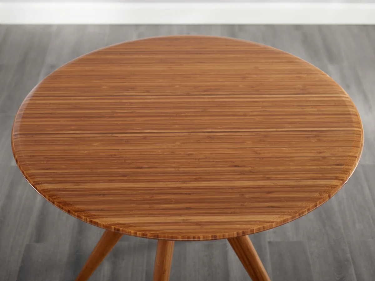 - No stain is used, the appealing caramelized color is achieved with heat and pressure. Variation in grain and color enrich the natural beauty of bamboo furniture and make each piece unique. Slight differences in bamboo shade colors are signs that the furniture has been crafted from solid bamboo and is considered a benchmark of quality. Crafted in 100% solid Moso bamboo, the Sitka dining table makes it easy for you to promote sustainability in a lovely, classic and functional way in your home.
