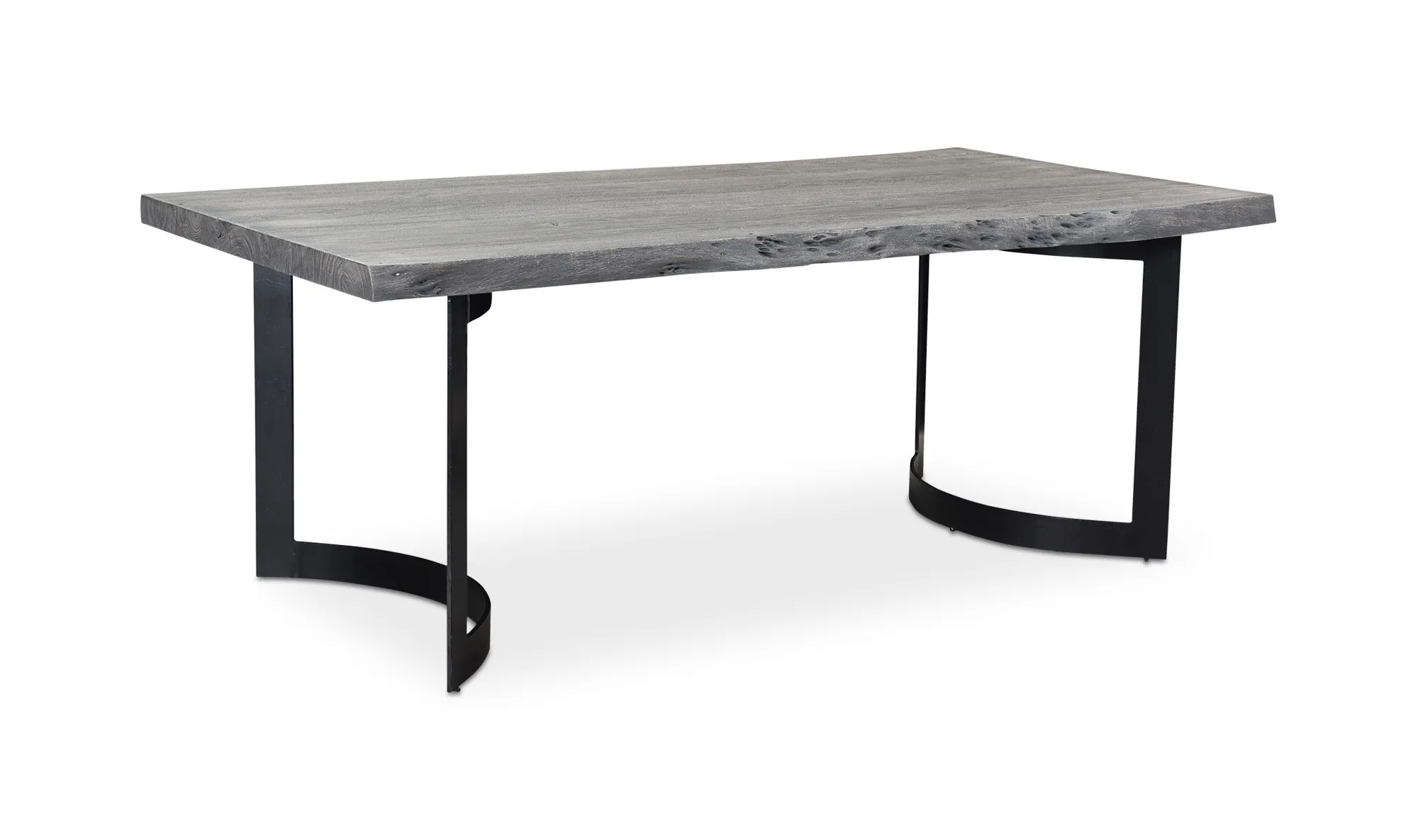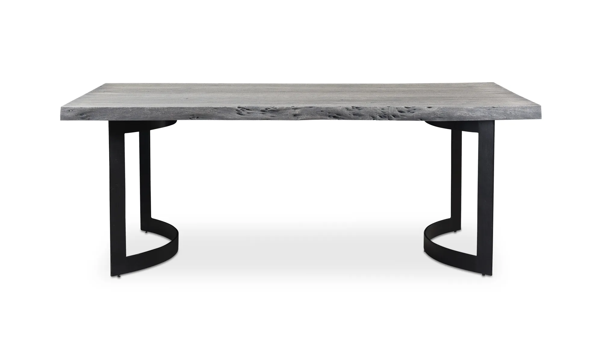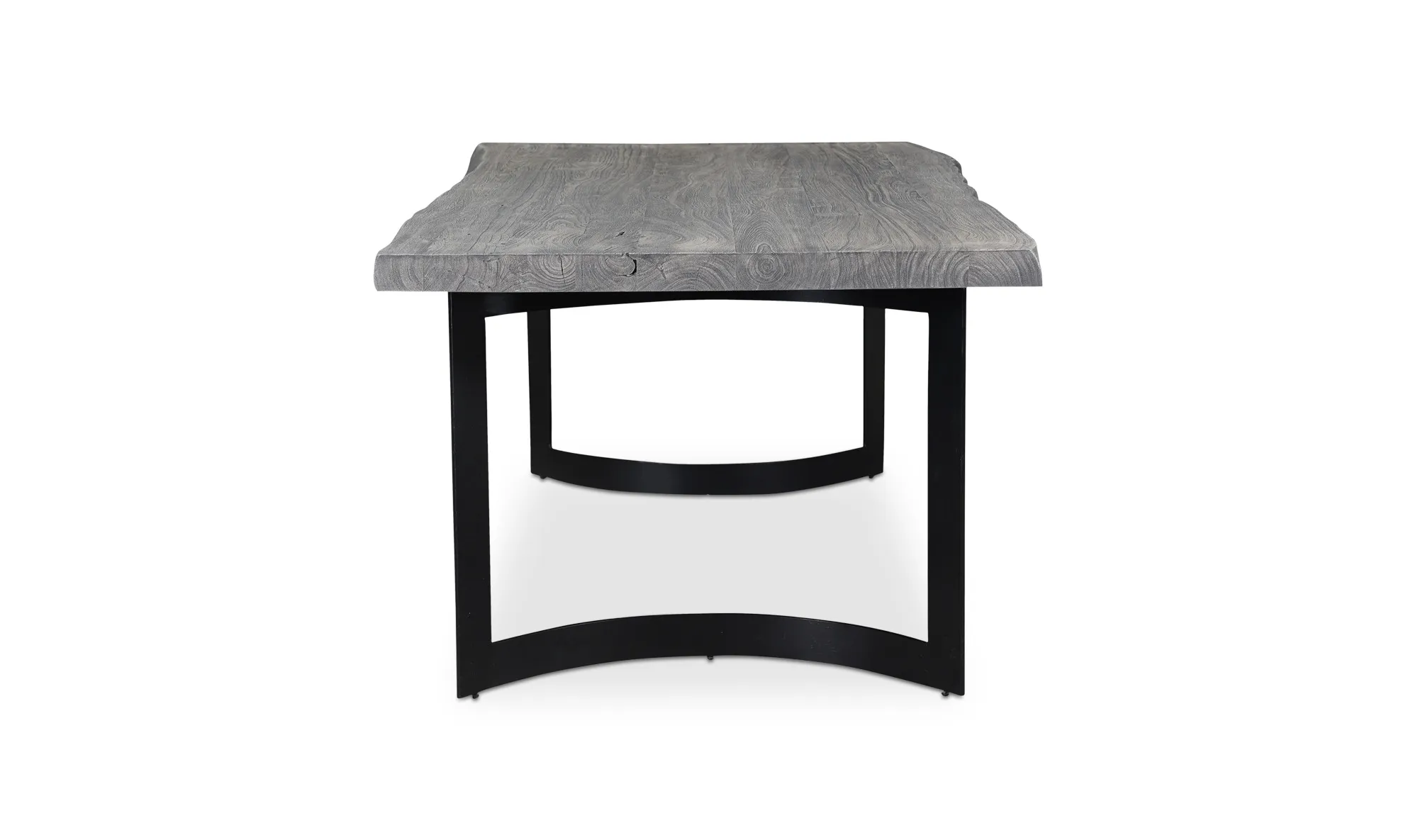A rustic motif accents your home with the Bent dining table. A Live-edge Acacia wood table-top with unique knots and grain pattern adds a welcoming organic look