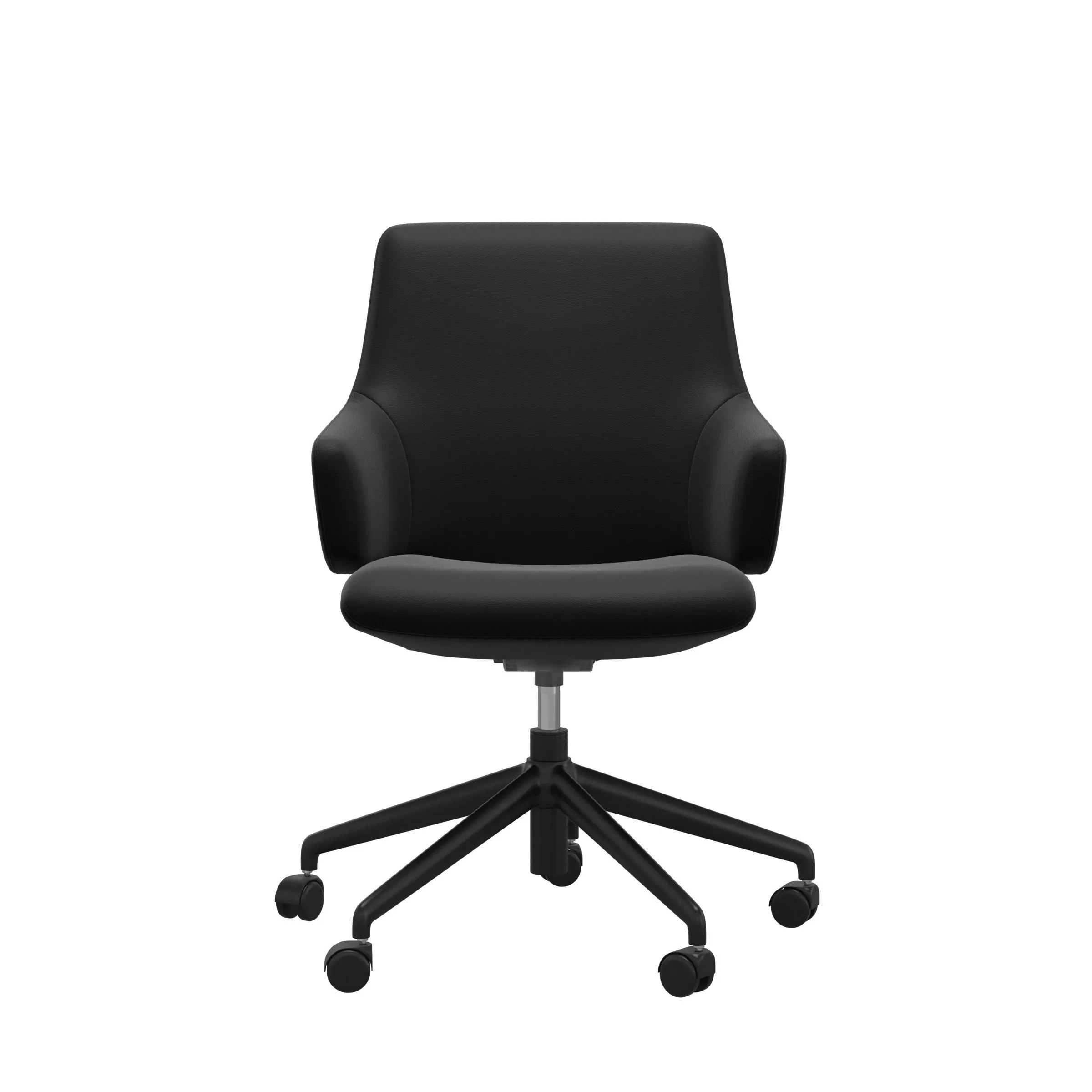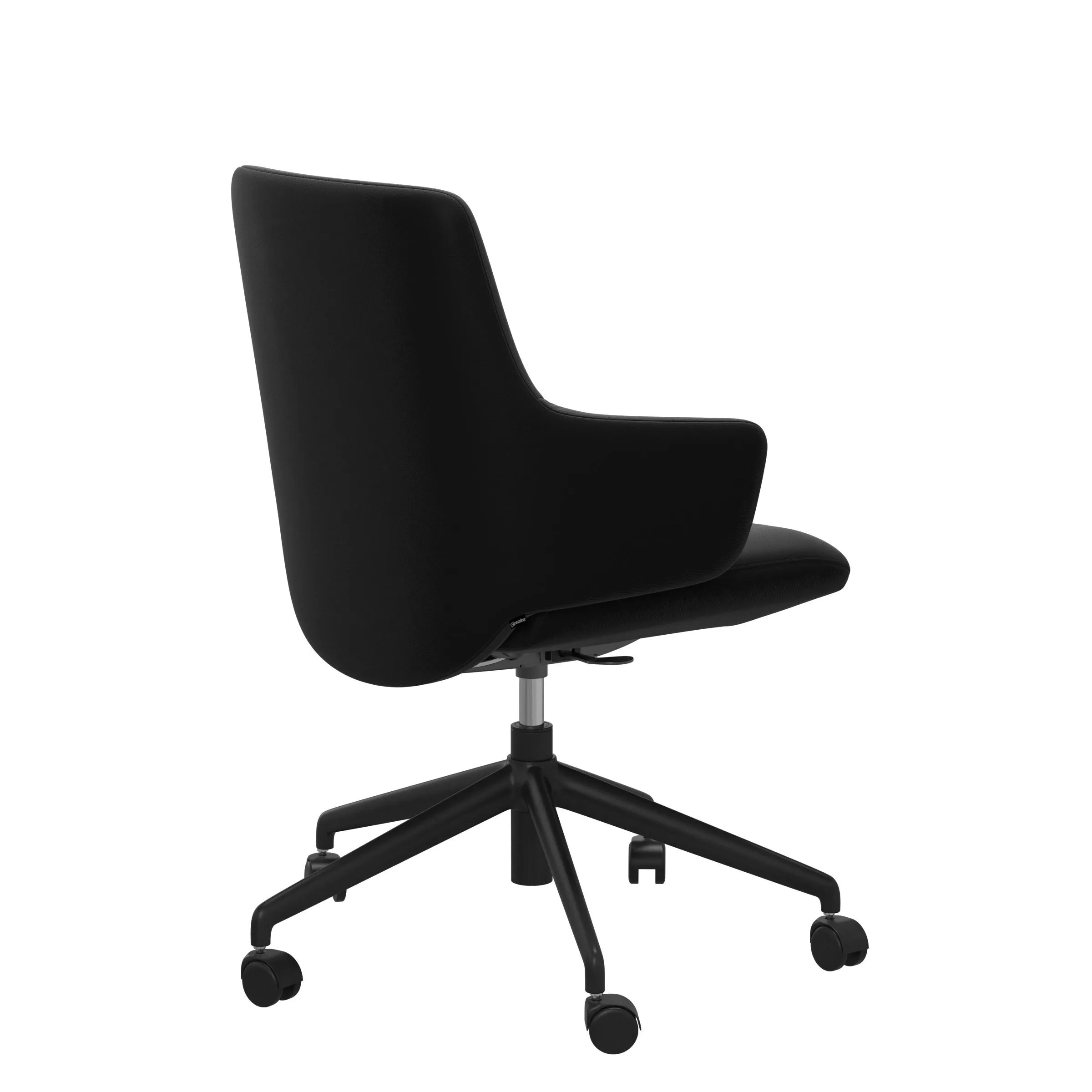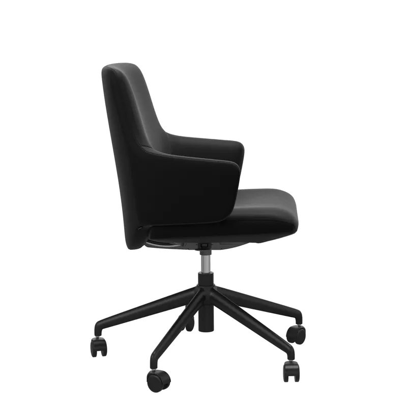Stressless® Home Office chairs are designed to blend in with any style. The chairs let you effortlessly shift positions throughout the day. The seat and back will follow your movements and offer good support. Lean back and the backrest will recline while the seat moves forward in a coordinated movement. A discrete flexibility in the seat offers good support and reduces the pressure on your lower thighs as you lean forward. The wide range of covers makes it easy to match with the rest of the interior (you can even get Dining Chairs with the exact same cushion design and cover choices). The wheels on the base make it easy to move around and there is also a lever under the seat that allows you to adjust the seat height by up to 4 inches.