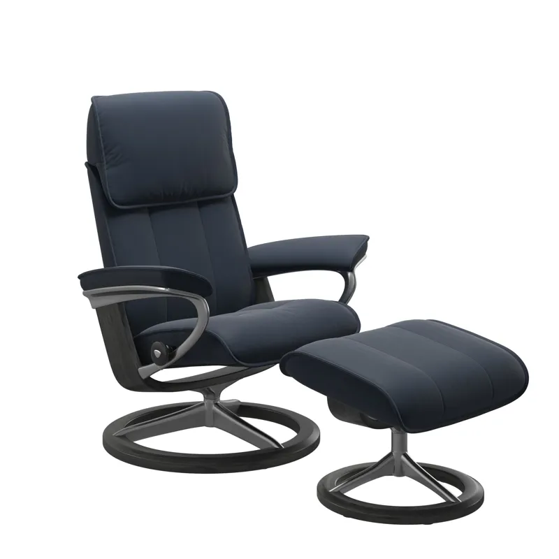 The Admiral (M) Signature Chair with Footstool - Paloma Oxford Blue w/Polished & Grey by Stressless may be available at Treeforms Furniture Gallery in the Anchorage, and Wasilla area. Please contact us to check availability.
