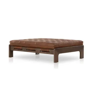 Material and shape share the spotlight. An angular, midcentury-inspired oak frame pairs with velvety olive upholstery. Subtle highs and lows in fabric change in appearance depending on the direction of the fabric's nap.