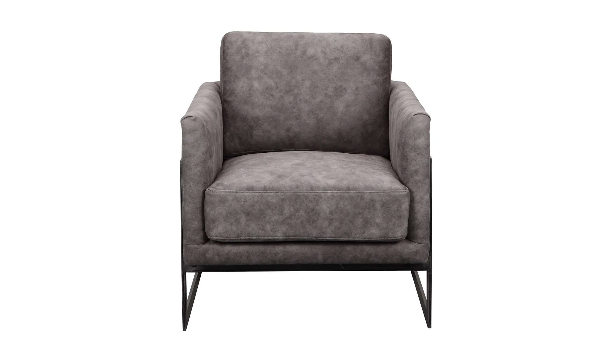 The Luxley club chair combines comfort and functionality with a simplistic modern form with its fully upholstered, grey top-grain leather, deeply comfortable seat, and eye-catching, semi-cantilevered frame design.