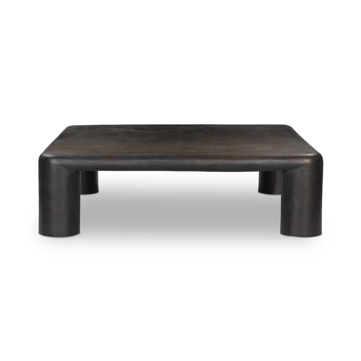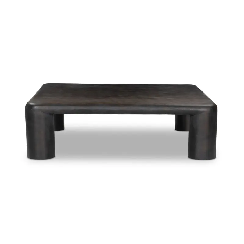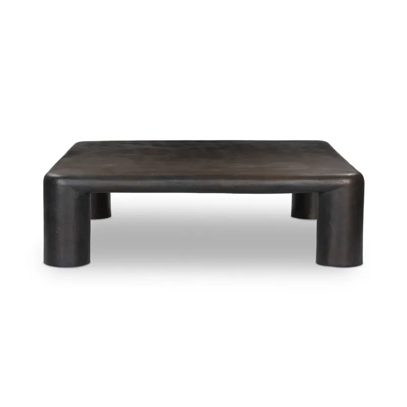 A seamless, fluid form to center your space. Made from bronzed aluminum, stocky legs square a smooth top, for a luxe take on industrial.