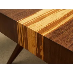 At the heart of the design, a striking panel of Exotic Tiger bamboo flows seamlessly across the tabletop and waterfalls down each side—its bold, natural grain adding depth and drama to the minimalist form. Expertly crafted in solid bamboo, Azara is finished in a rich Sable stain, hand-applied to enhance the organic beauty of the grain.