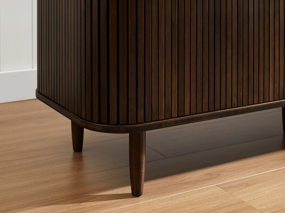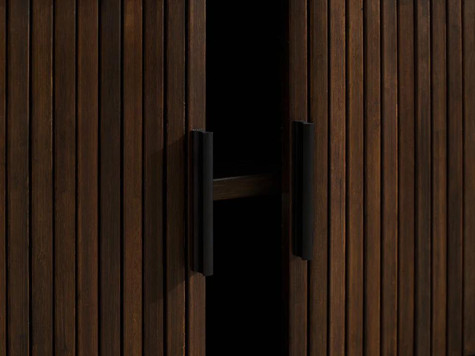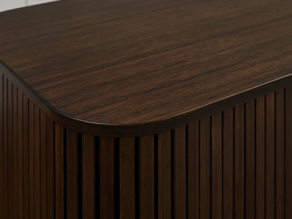Crafted from solid bamboo and hand finished in a rich Black Walnut stain, the Carmel console showcases the natural beauty of bamboo with unique grain and color variations. These subtle differences not only highlight the authenticity of the material but also mark each piece as one-of-a-kind, a testament to its exceptional quality.