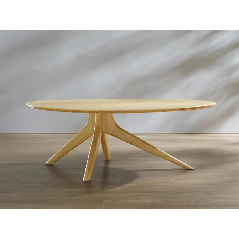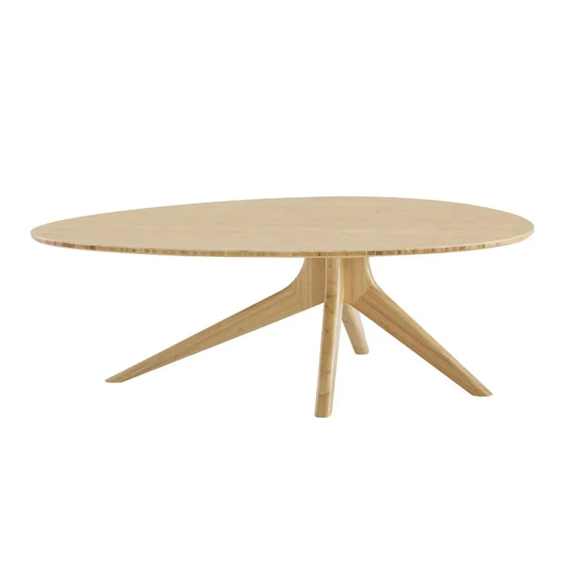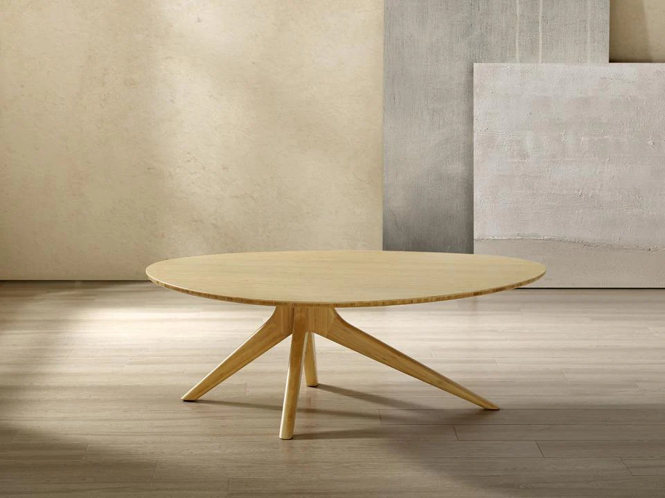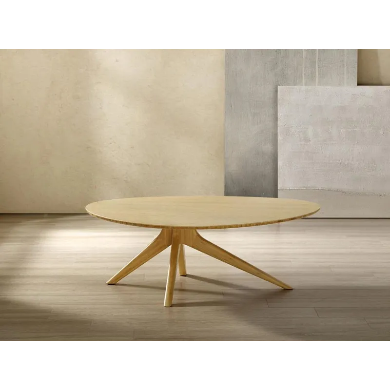 Inspired by Scandinavian modernism, the Rosemary coffee table exudes a sculptural elegance that brings timeless Mid-Century style into today’s home. Rosemary’s flowing curves and graceful oval top rest on an asymmetric base, blending impeccable balance and sophisticated style. Its clean lines and exquisite proportions elevate any space, while the natural beauty of Greenington’s solid bamboo takes center stage.