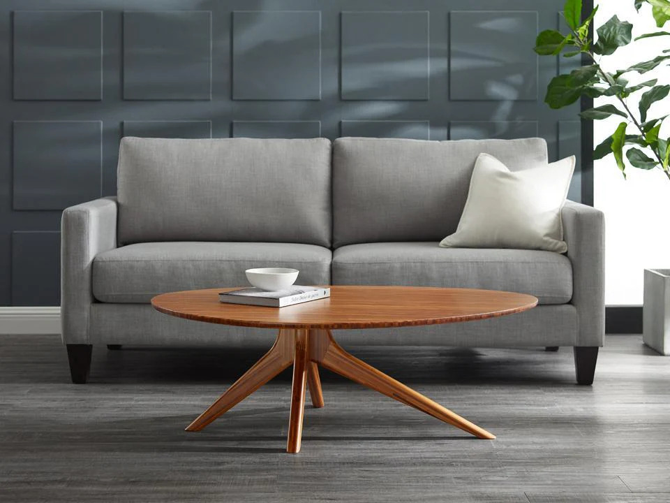 Inspired by Scandinavian modernism, the Rosemary coffee table exudes a sculptural elegance that brings timeless Mid-Century style into today’s home. Rosemary’s flowing curves and graceful oval top rest on an asymmetric base, blending impeccable balance and sophisticated style. Its clean lines and exquisite proportions elevate any space, while the natural beauty of Greenington’s solid bamboo takes center stage.
