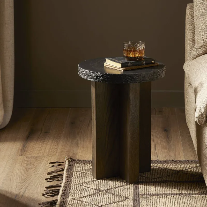 Mezes End Table, Small - Natural Basalt