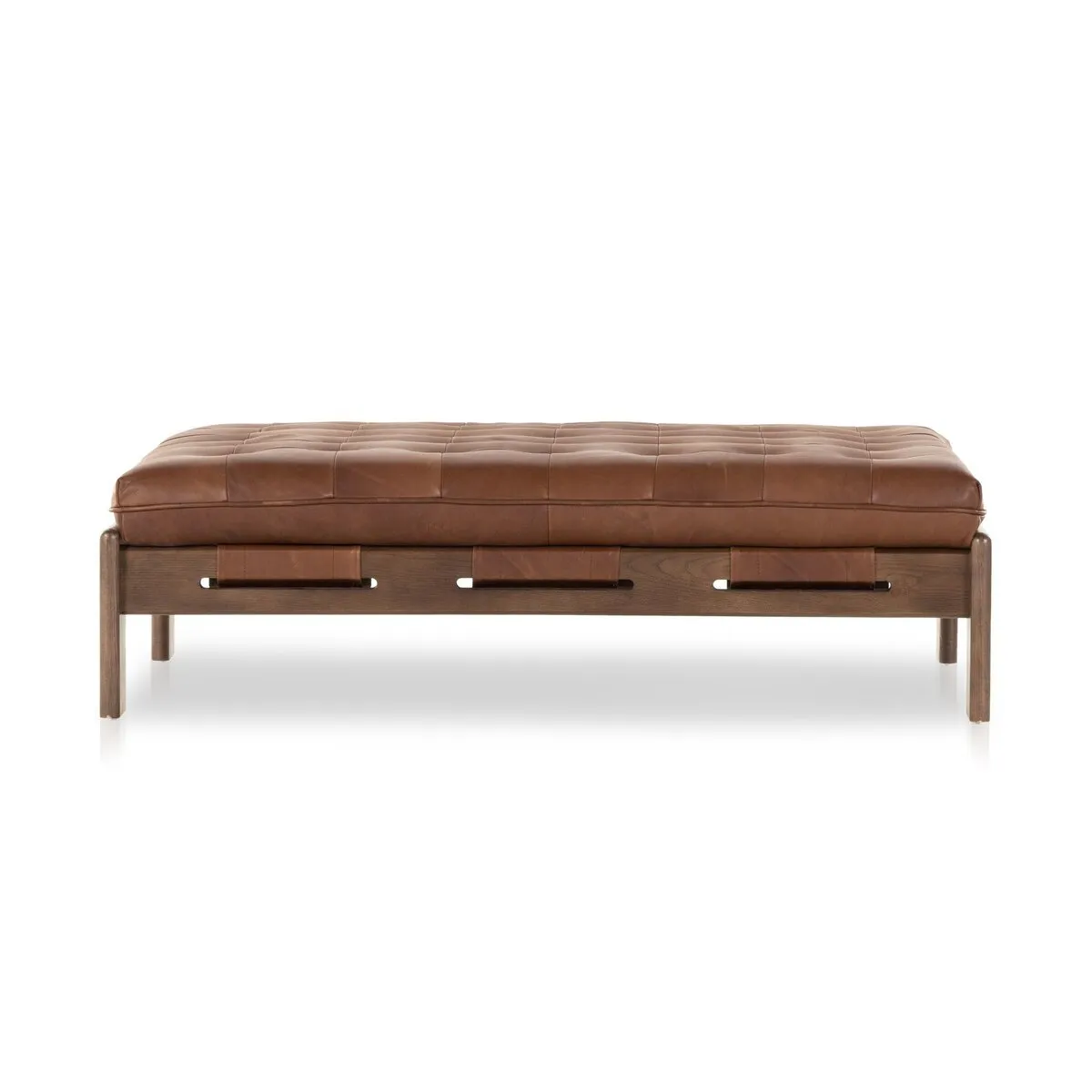 A Seventies-era style inspired by a flea market find. Top-grain leather features dramatic tufting with sling detailing and wide ash framing below. Sourced from one of the oldest family-owned tanneries in Italy's Bassano del Grappa, heirloom leather is salvaged and processed from upcycled hides featuring an abundance of natural markings, scars and color variations. The result? Beautifully supple, buttery soft hides with an unmatched depth of color and richness, and an authentic lived-in look.