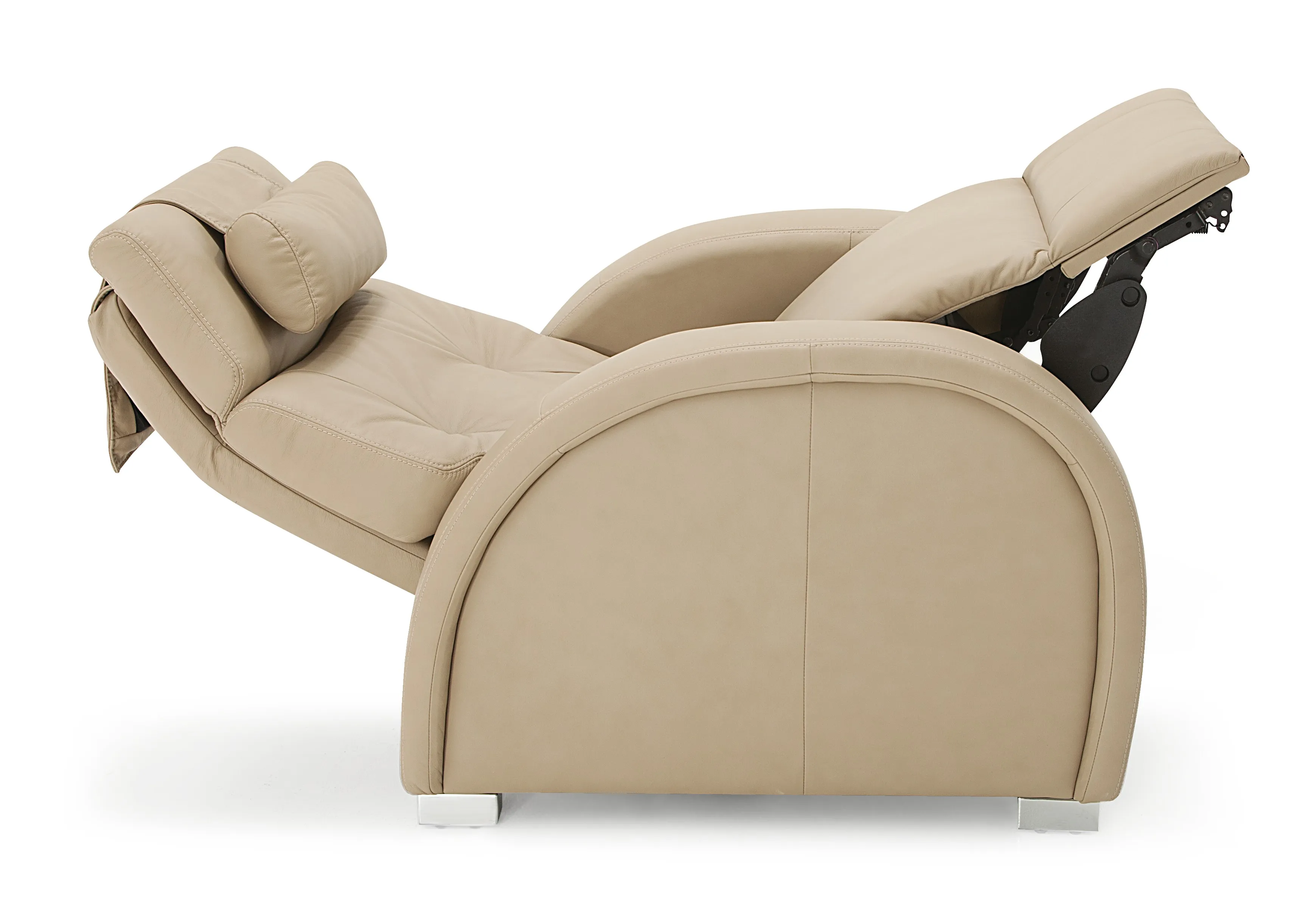 One can experience the amazing zero gravity position at the touch of a button and discover convenient comfort right at home. The ZG4 power recliner allows ease of movement to an upright or reclined position. Fluidly recline to the health-enhancing zero gravity position for reduced stress on the back and increased circulation. For added support, the lumbar back pillow and head pillow can be adjusted to help you find the perfect position for complete relaxation or sleeping. State-of-the-art comfort features and a curvaceous silhouette make the ZG4 a trendy accent for your home, while also providing you with a sanctuary to help melt the stress of the day away.