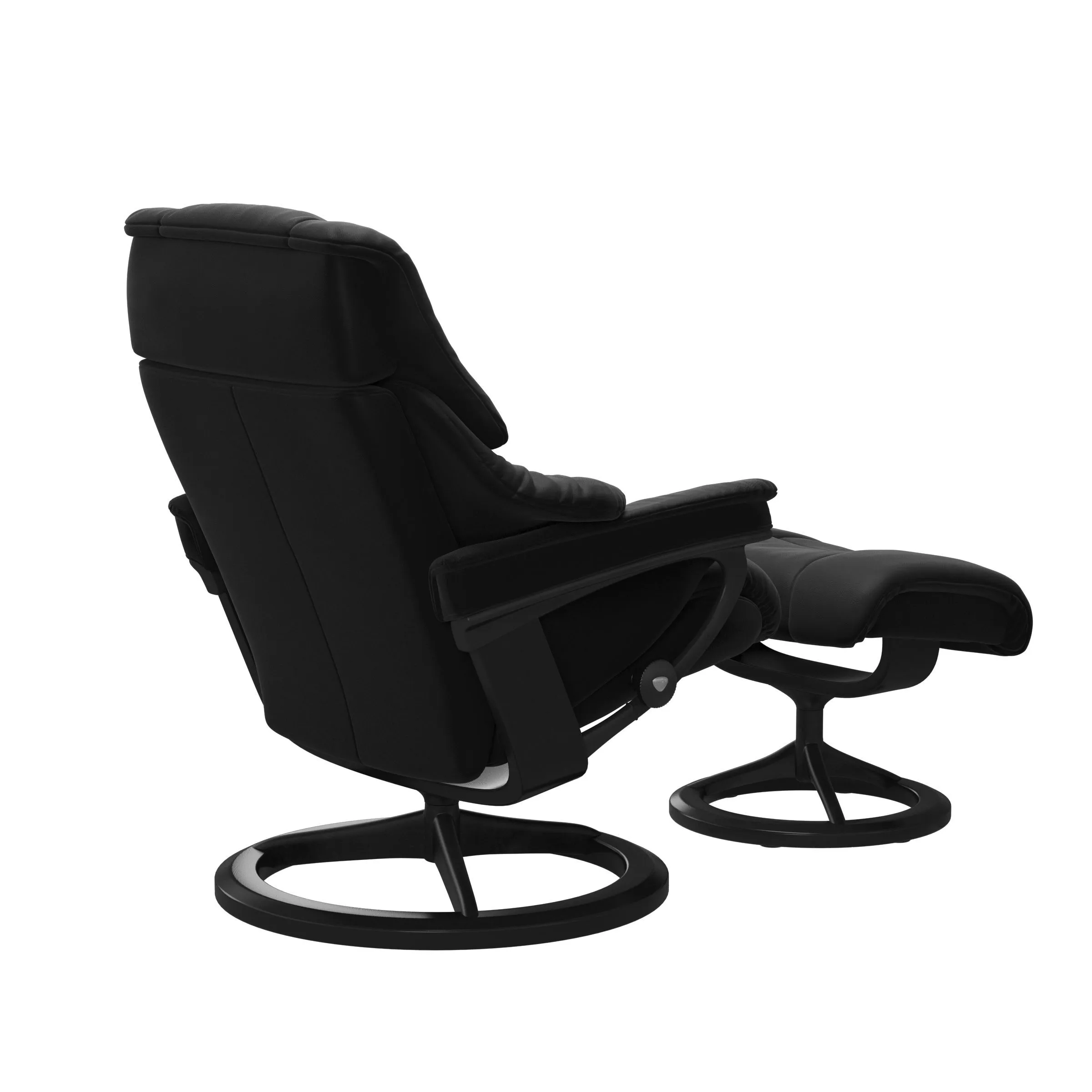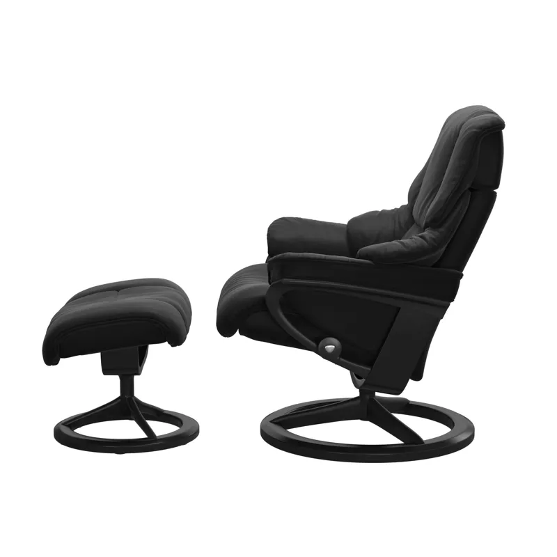 The Reno (M) Signature Base Recliner with Ottoman - Paloma Black w/Matt Black & & Black by Stressless may be available at Treeforms Furniture Gallery in the Anchorage, Wasilla and Anchorage areas. Please contact us to check availability.