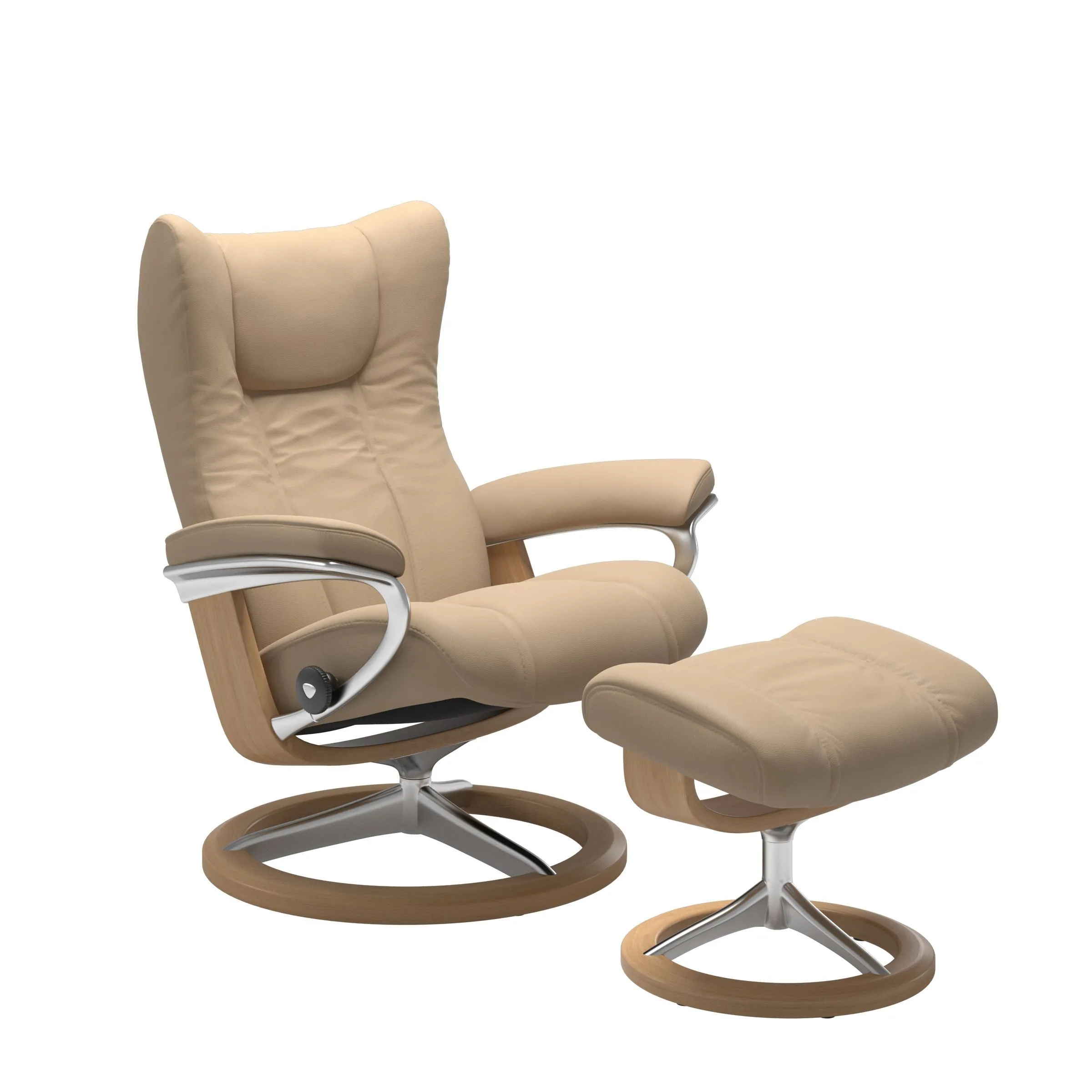The Wing (L) Signature Base Recliner with Ottoman by Stressless may be available at Treeforms Furniture Gallery in the Anchorage, Wasilla and Anchorage areas. Please contact us to check availability.