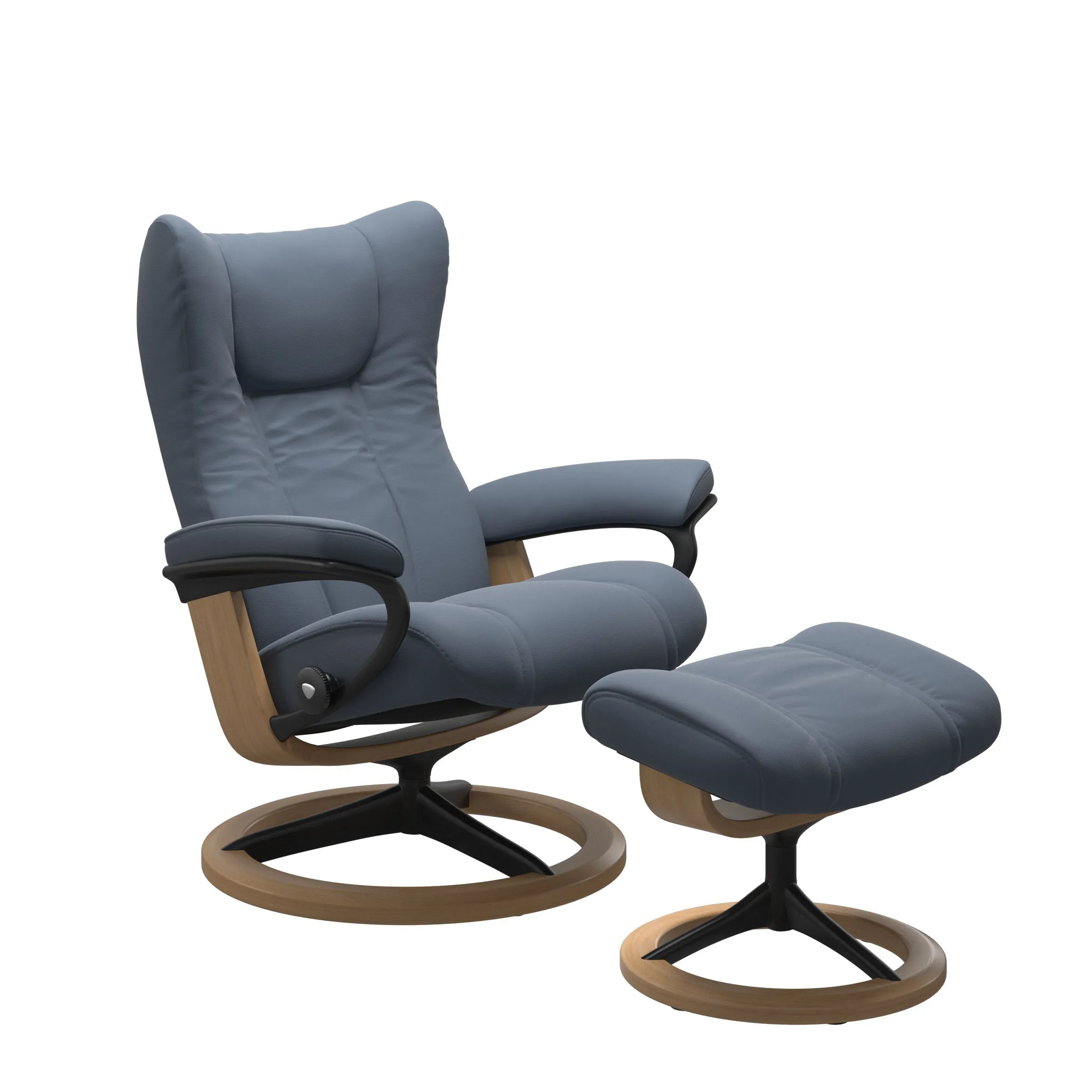 The Wing (S) Signature Base Recliner with Ottoman by Stressless may be available at Treeforms Furniture Gallery in the Anchorage, Wasilla and Anchorage areas. Please contact us to check availability.