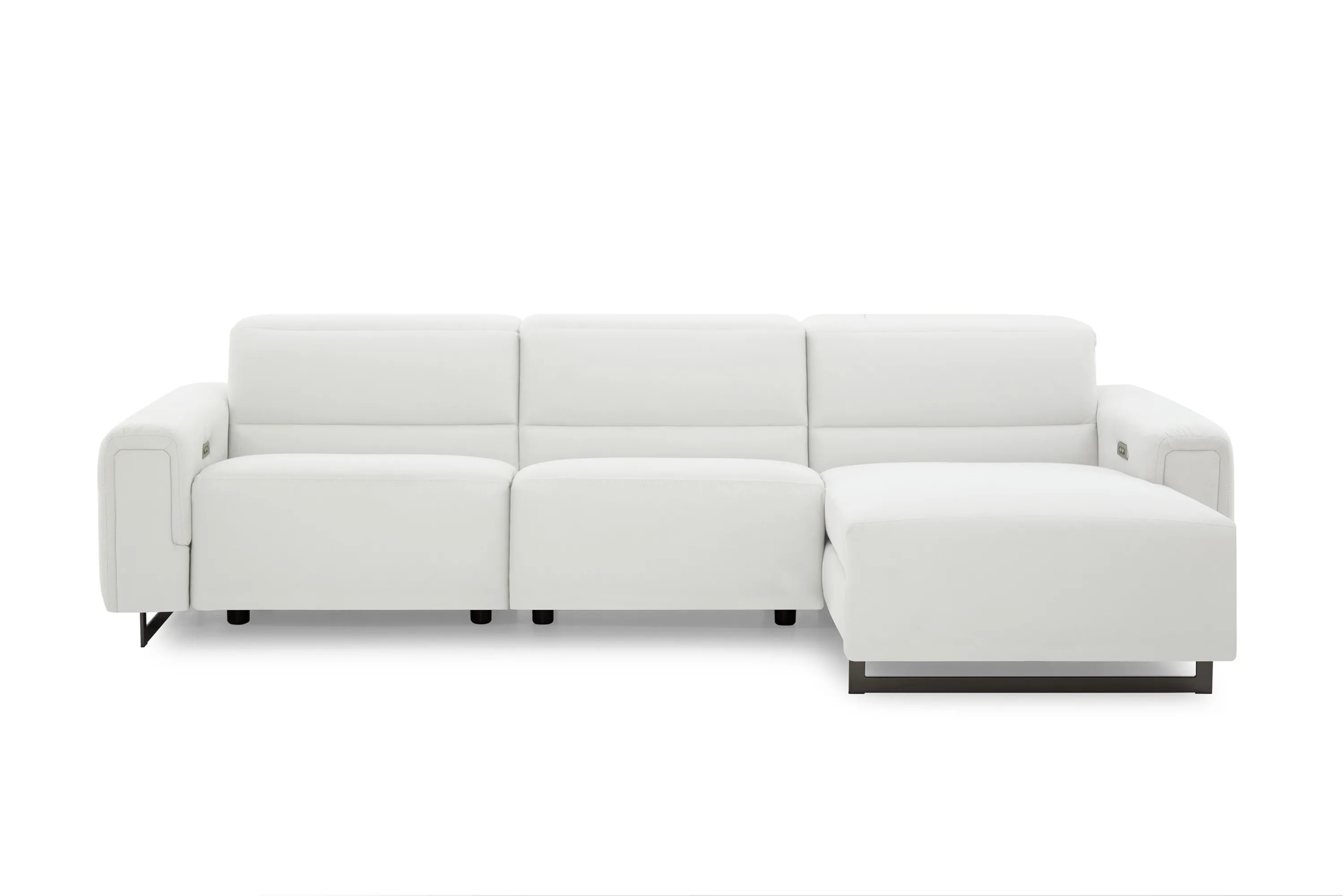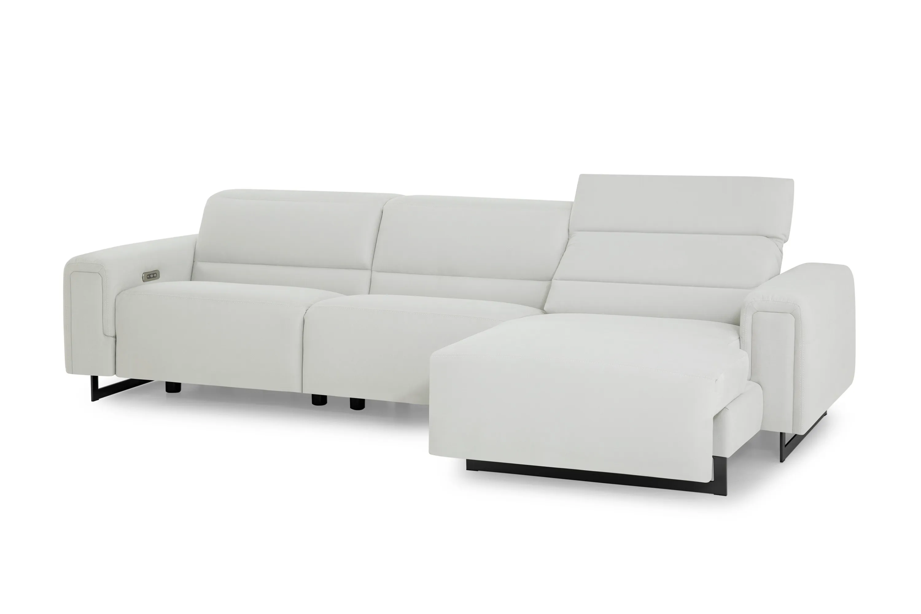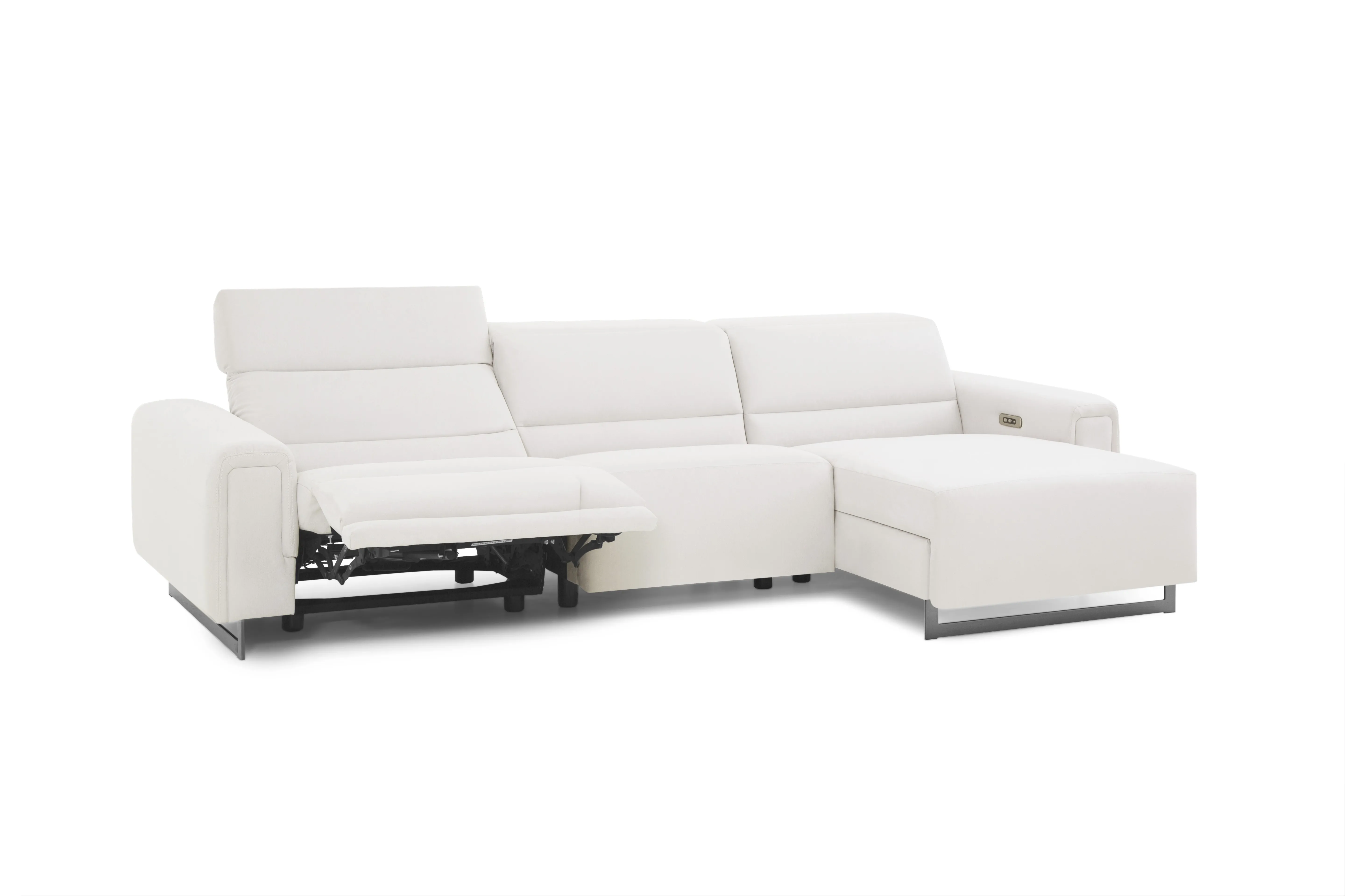 The Armina combines contemporary looks with soft, inviting details. Padded arms and a lumbar panel enhance the supportive seat made with high-resiliency foam, while power recline and headrest provide customizable comfort. Sleek sled legs complete the look and can be customized in chrome or black metal.