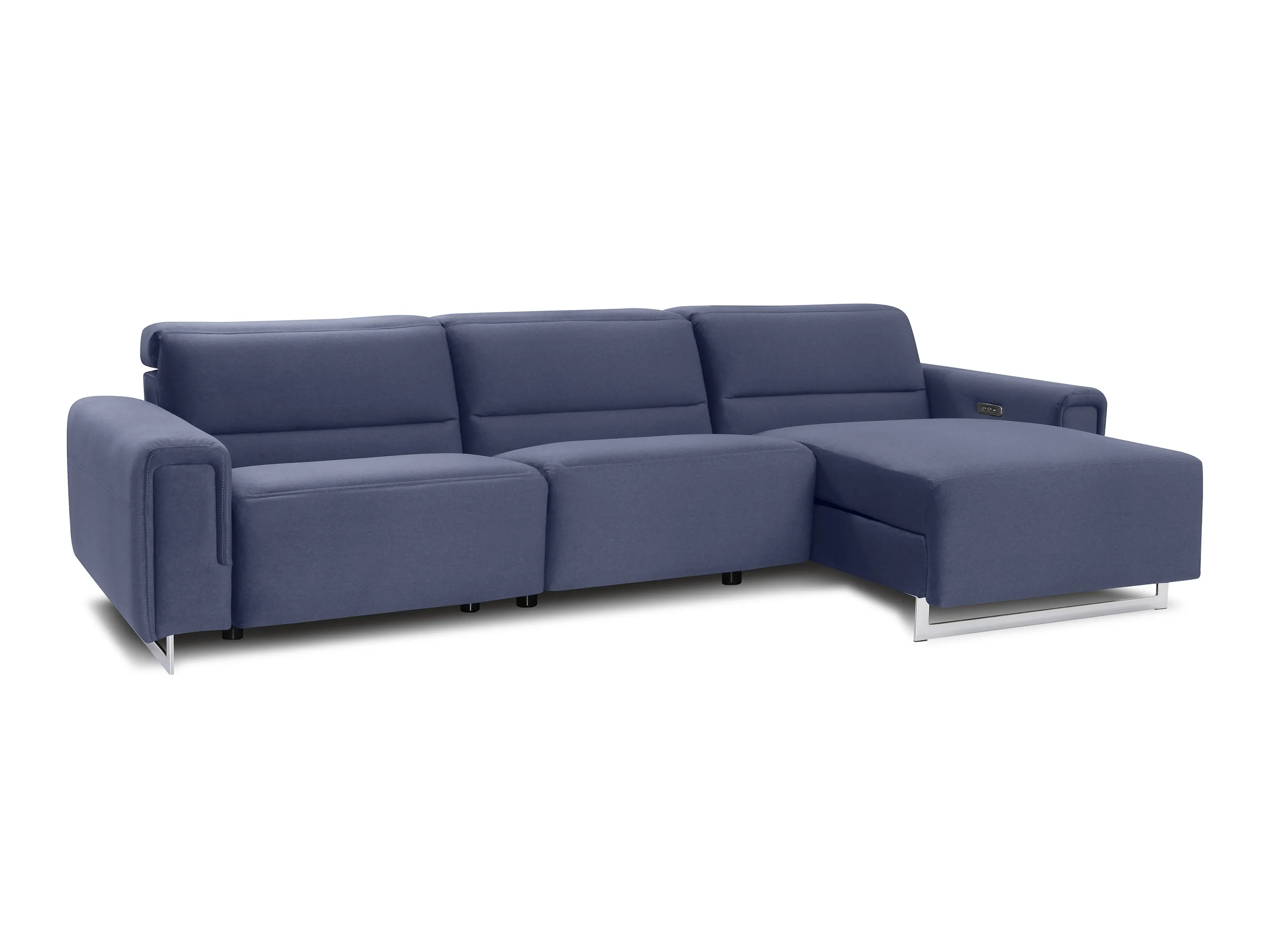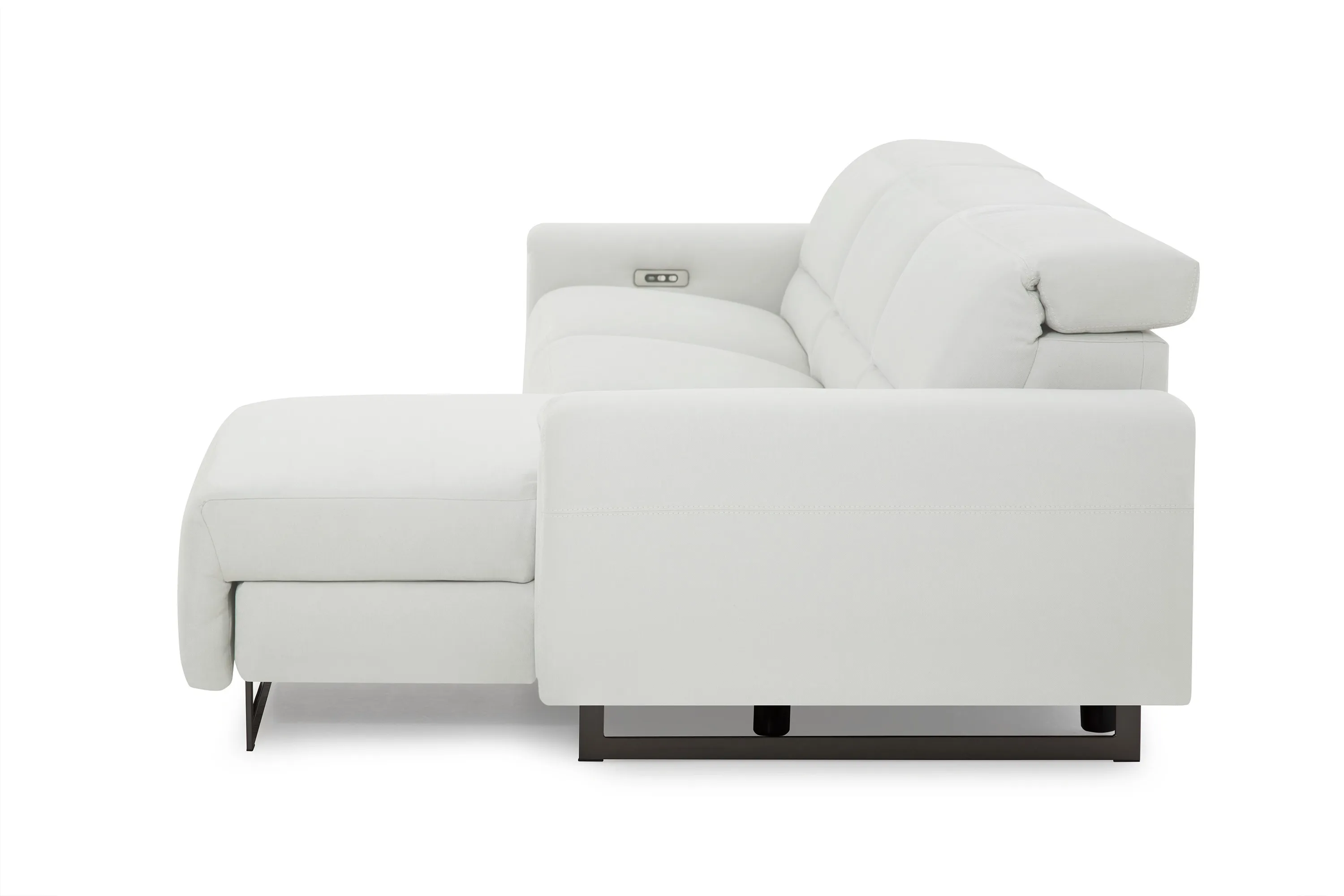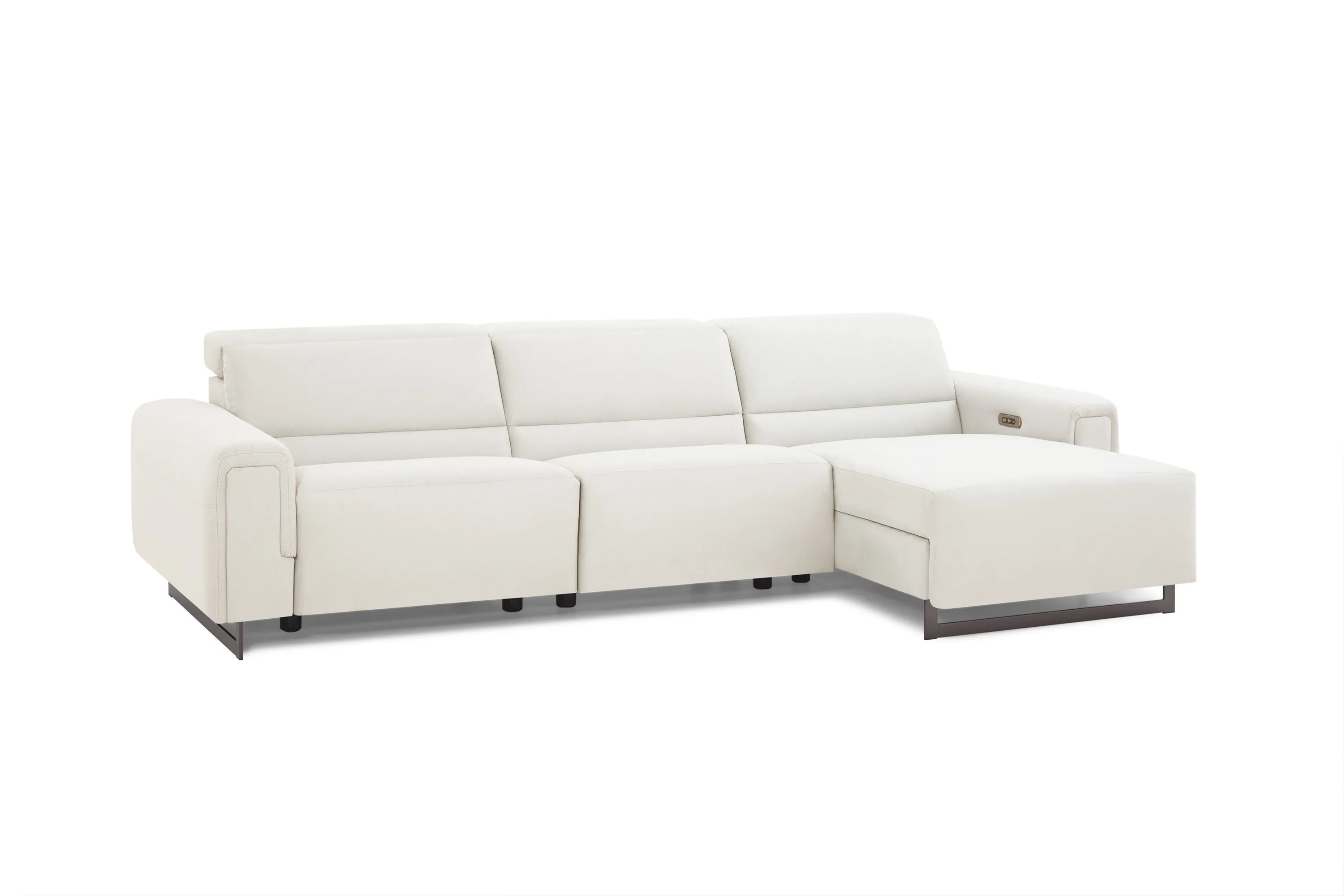 The Armina combines contemporary looks with soft, inviting details. Padded arms and a lumbar panel enhance the supportive seat made with high-resiliency foam, while power recline and headrest provide customizable comfort. Sleek sled legs complete the look and can be customized in chrome or black metal.